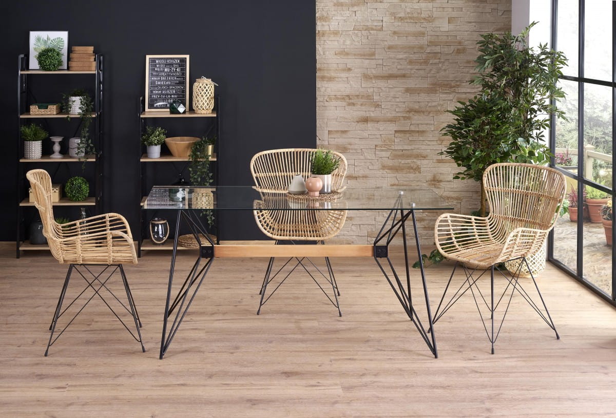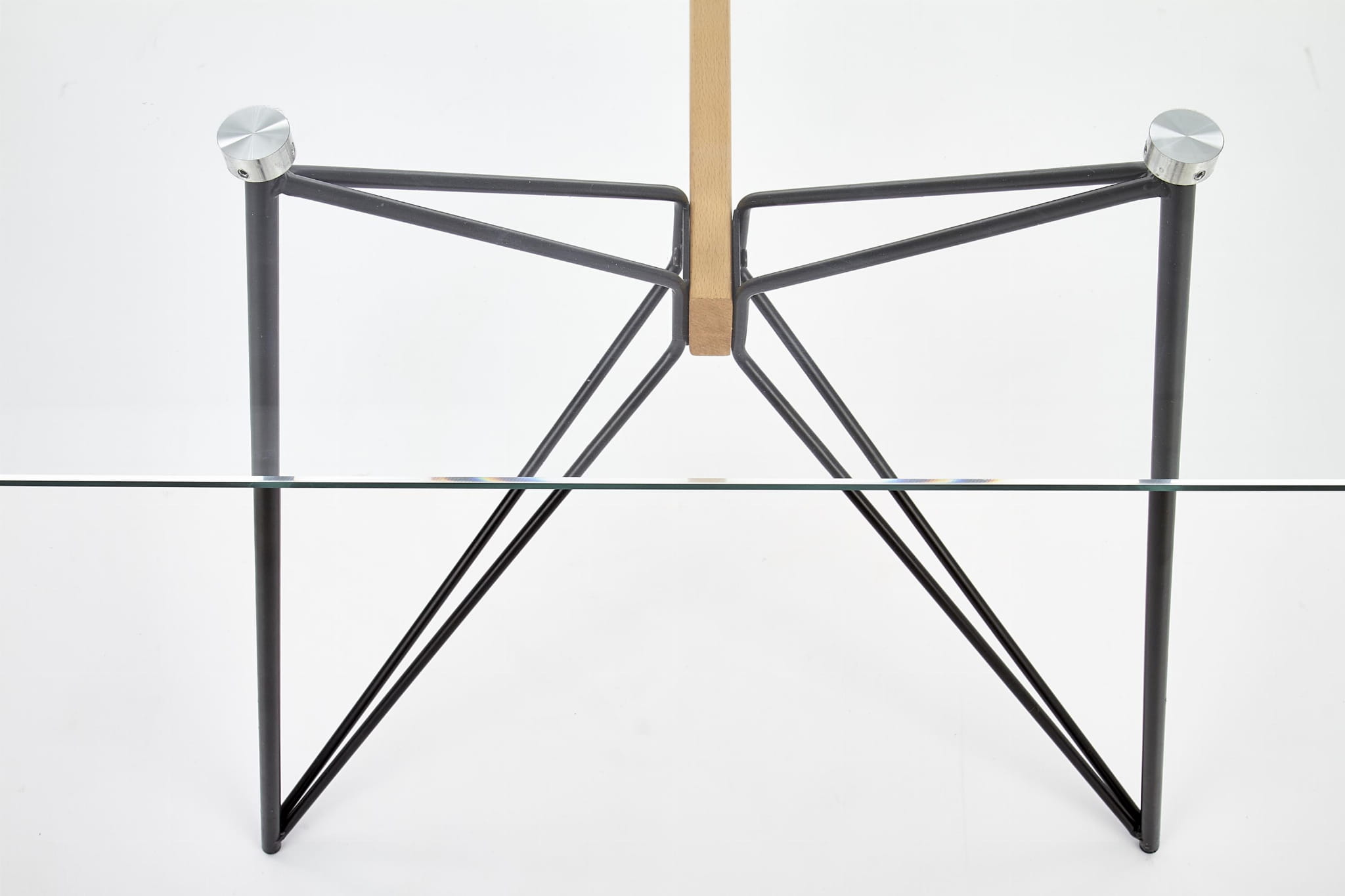 - materiał: szkło / drewno lite - bukowe / stal malowana proszkowo,
