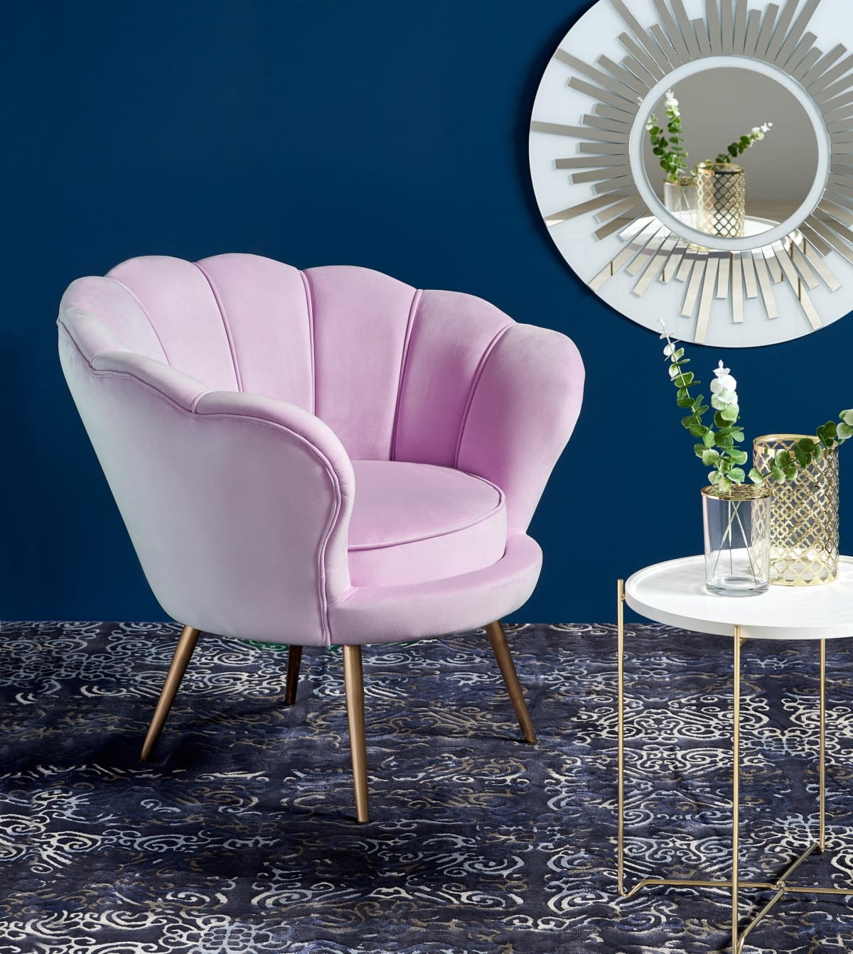 AMORINO fotel wypoczynkowy fioletowy, nogi - złote
