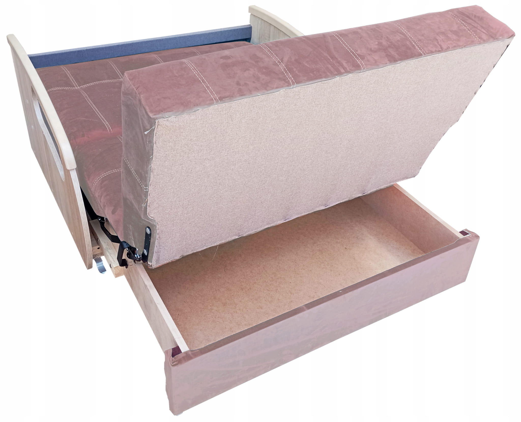 Solidny mechanizm rozkładania przytwierdzony do drewnianej ramy za pomocą śrub sprawia, że mebel rozkłada się bezproblemowo, a konstrukcja mebla jest niezwykle wytrzymała i stabilna.