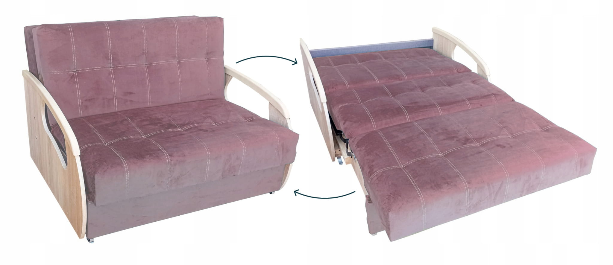 Amerykanka Dwuosobowa Welur do Spania Różowa Fotel Rozkładany Julia II 120