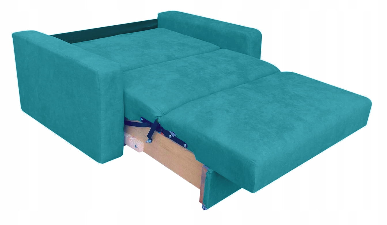 Solidny mechanizm rozkładania przytwierdzony do drewnianej ramy za pomocą śrub sprawia, że mebel rozkłada się bezproblemowo, a konstrukcja mebla jest niezwykle wytrzymała i stabilna.