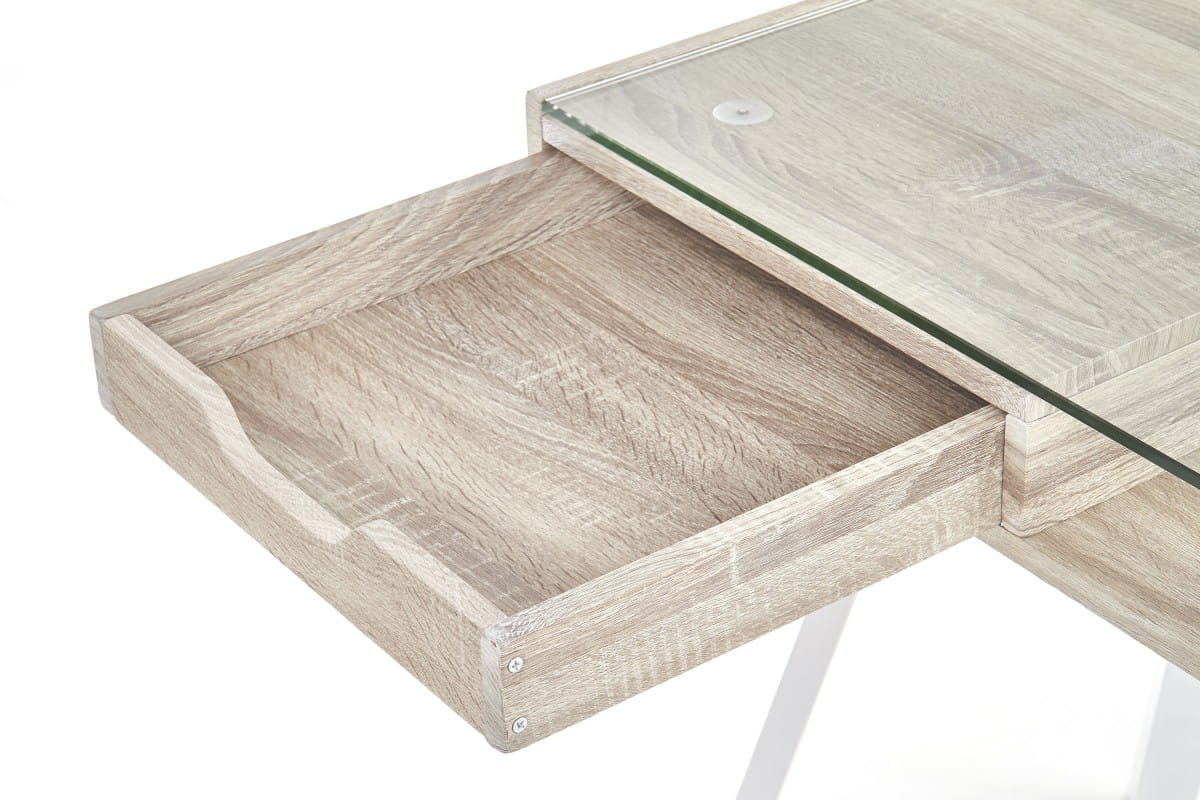 Przedstawiamy Państwu nowoczesne oraz designerskie biurko firmy Halmar, które przepięknie będzie się prezentować w pokoju młodzieżowym, sypialni, biurze oraz biurze domowym. Produkt został zrobiony z najwyższej jakości materiałów. Blat jest szklany, przezroczysty, a nogi metalowe są w czarnym kolorze. Biurko ma nowoczesne, a jednocześnie uniwersalne kształty dlatego doskonale wpasuje się w każde wnętrze.