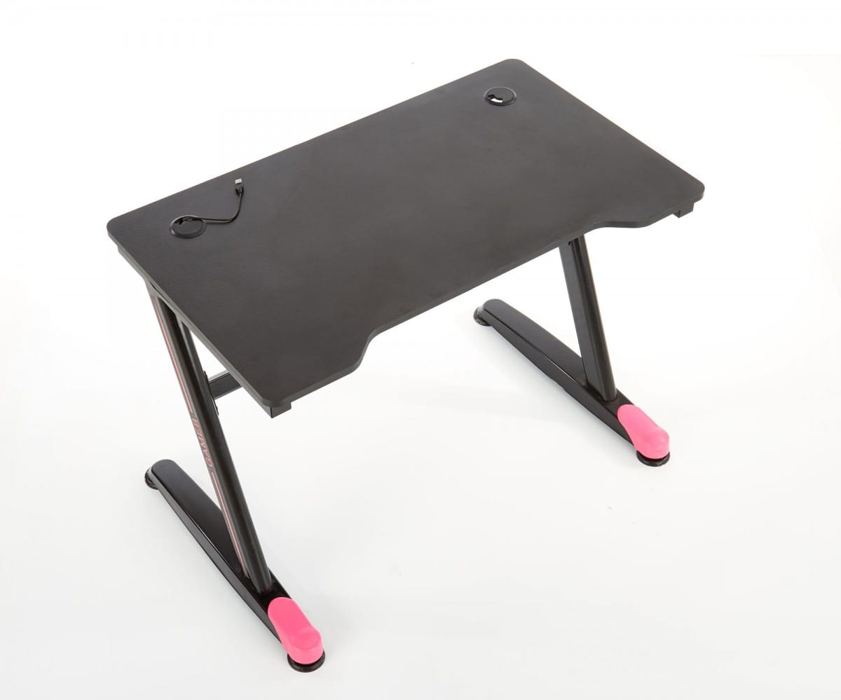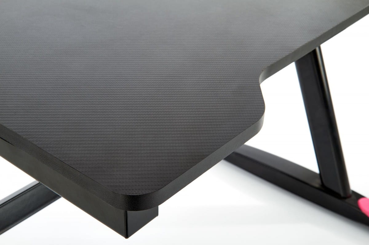Biurko gamingowe B40 to praktyczna konstrukcja wykończona w modernistycznej kolorystyce. Czarne biurko z czerwonymi wstawkami prezentuje się nadzwyczaj dynamicznie - idealnie komponuje się z fotelem gamingowym, który zapewnia maksymalny komfort nawet wielogodzinnego siedzenia. Przestronny blat biurka B40 wykonany jest z płyty MDF okleinowej, która jest trwała i łatwa do utrzymania w czystości. Stelaż biurka charakteryzuje się zwiększoną stabilnością - stworzono go ze stali malowanej proszkowo. Biurko bez szuflad oraz półek dodatkowo umieszczone jest na niskich stopkach, które sprawią, że mebel pomimo szybkich ruchów myszką nie będzie się przemieszczał. Prostokątne biurko będzie idealnym elementem wyposażenia przestrzeni pokoju młodzieżowego lub prywatnego gabinetu