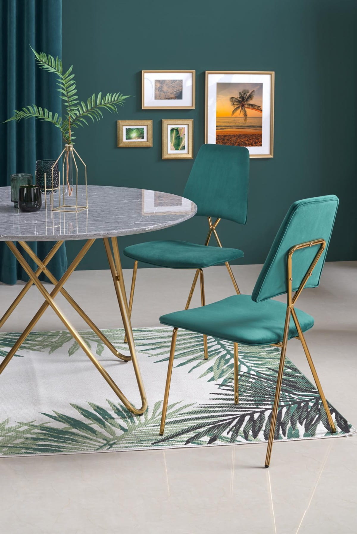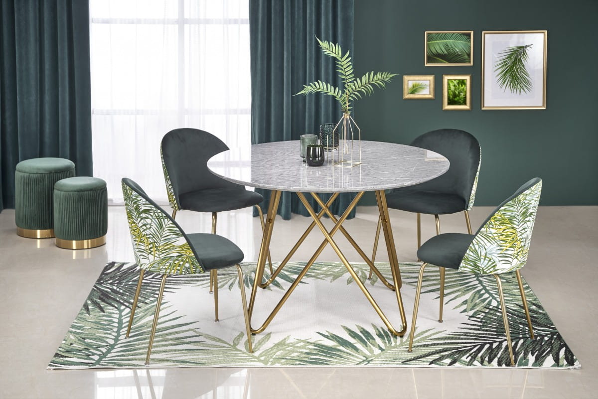 BONELLO stół, blat - popielaty marmur, nogi - złoty