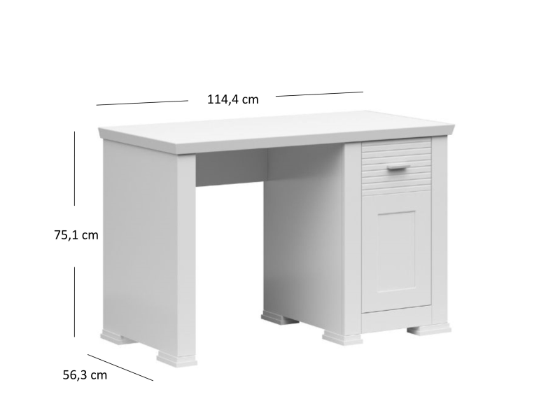 Biurko z kolekcji AGNES może stanowić idealne wyposażenie gabinetów, biur, a także pokojów młodzieżowych. Mebel jest inspirowany kolumnami doryckimi charakterystycznymi dla starożytnej Grecji. Kwintesencję kolekcji stanowią ramiakowe fronty z poziomymi ryflowaniami oraz stylowe nogi, a to wszystko w odcieniu jednolitej bieli. Agnes jest połączeniem solidnego, antycznego funkcjonalizmu i współczesnej estetyki. Zamknięte półki zapewniają wyższy komfort użytkowania biurka, ponieważ wszystkie potrzebne, drobne przedmioty możesz mieć pod ręką, lecz nie na blacie mebla.