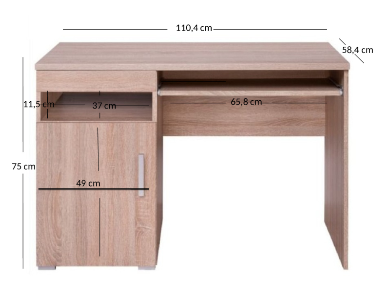 Prosta forma, kolor dąb sonoma imitujący drewno, minimalistyczne uchwyty oraz wysoki poziom funkcjonalności to cechy, które wyróżniają kolekcję DAMIS. Biurko z tej kolekcji, posiadające szufladę oraz szafkę nie dość, że jest wygodne to posłuży jako idealne miejsce do pracy, nauki oraz spędzania wolnego czasu. Wysuwany blat sprawdzi się jako przestrzeń przeznaczona na klasyczną klawiaturę od komputera lub może pełnić rolę dodatkowej półki. Mebel ten przeznaczony jest do minimalistycznego biura, pokoju młodzieżowego lub dziecięcego.