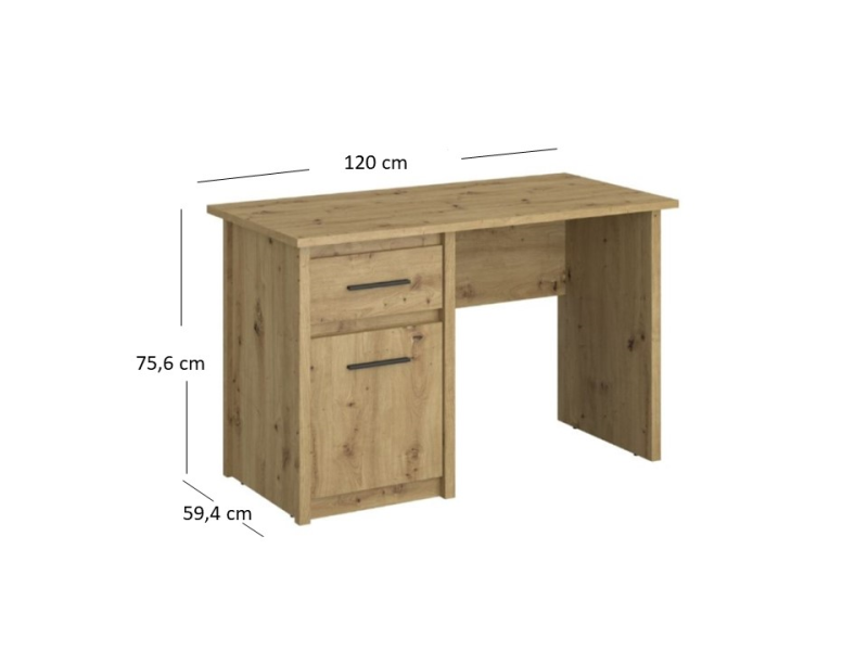 Biurko 1d1s/120, dąb artisan, kolekcja Ayson