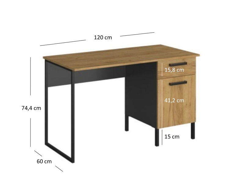 Biurko 1d1s/120 z kolekcji Santes może stanowić idealne wyposażenie gabinetów, biur, a także pokojów młodzieżowych. Szafka zamknięta na front oraz szuflada zapewniają wyższy komfort użytkowania biurka, ponieważ wszystkie potrzebne, drobne przedmioty możesz mieć pod ręką. Oryginalność bryły podkreśla zastosowanie jednocześnie różnych kolorów i struktur – dąb craft złoty oraz antracyt. Tym co wyróżnia całą kolekcję mebli SANTES są proste geometryczne bryły oparte na czarnych, wyróżniających się nóżkach.