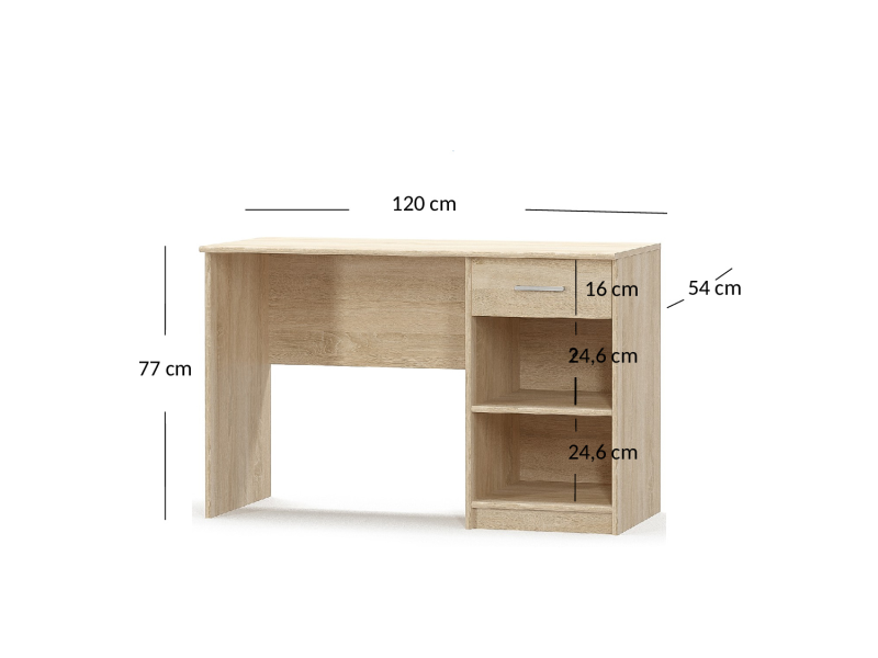 Biurko jest dostępne w 2 zestawieniach kolorystycznych: dąb sonoma oraz dąb sonoma z białymi frontami.