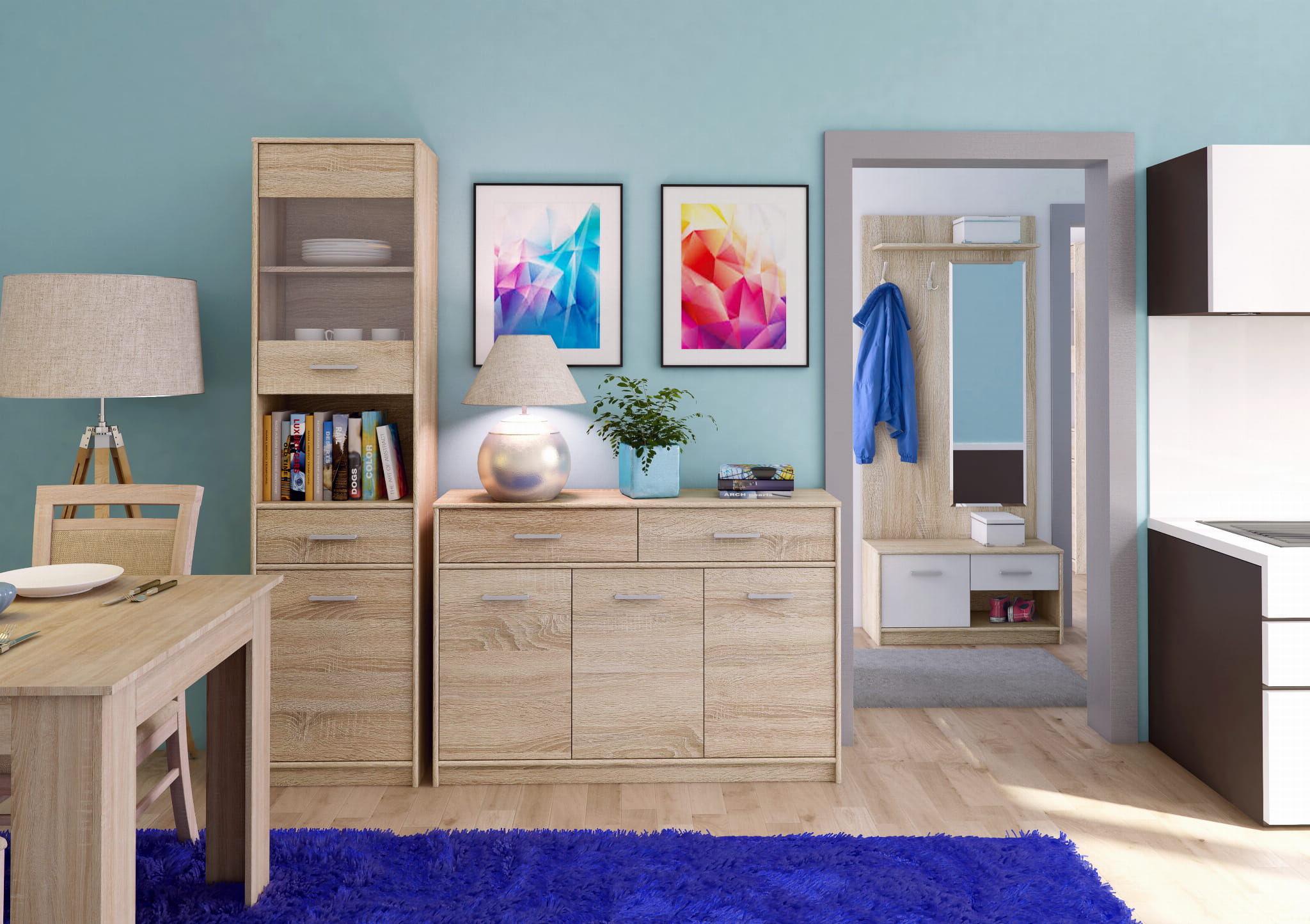 + Proste bryły i formy mebli sprzyjają ich użytkowaniu.