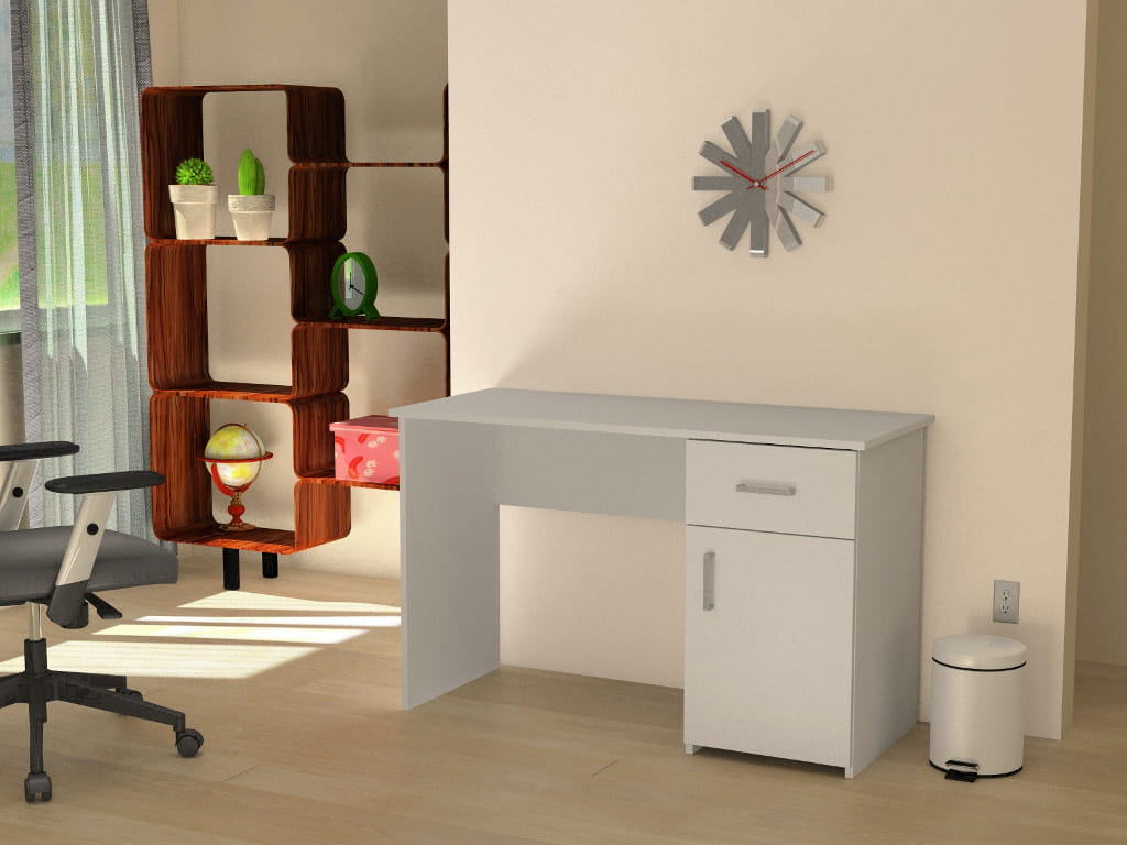 Biurko komputerowe z szafką i szufladą, szkolne, duże, stolik FIODOR białe 120 cm