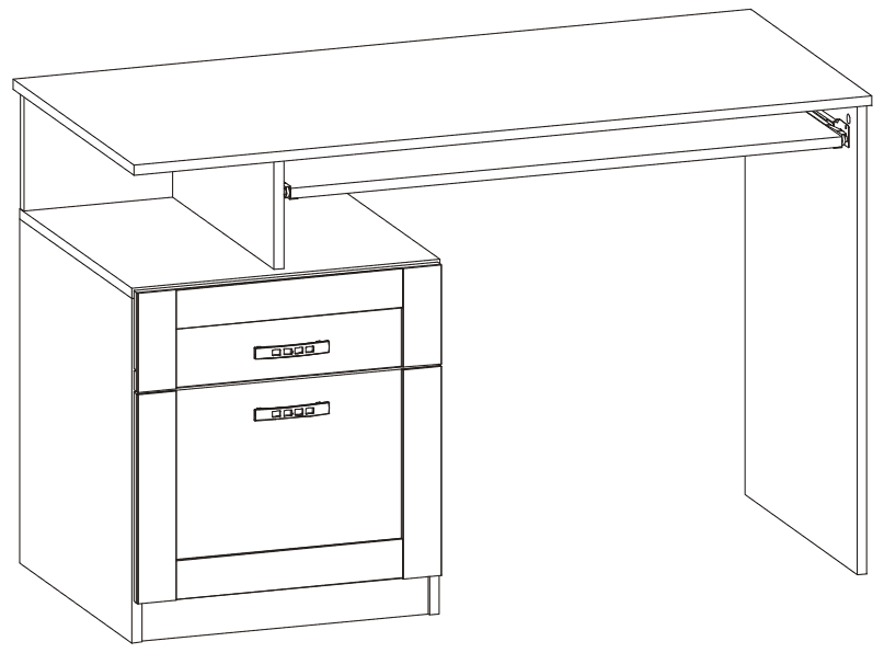 Biurko BOSS BS11 pomoże zaaranżować wyjątkową i funkcjonalną przestrzeń w biurze, gabinecie lub pokoju dziennym. Pojemne wnętrze pomieści dokumenty i artykuły piśmiennicze potrzebne do pracy i nauki. Pod blatem znajduje się wysuwana szuflada na klawiaturę. Bryłę można uzupełnić o nadstawkę, która zwiększy miejsce na przechowywanie rzeczy codziennego użytku.