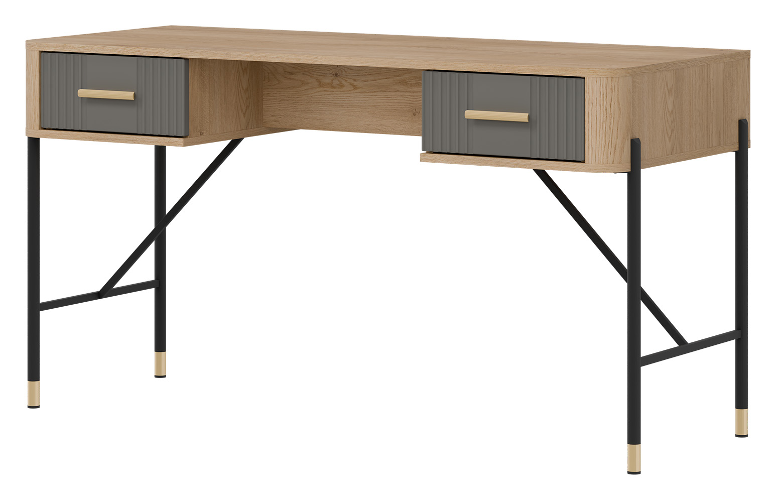 Biurko z szufladami Stolik do pokoju 140 cm Dąb Szary Złoty DANTE DT23