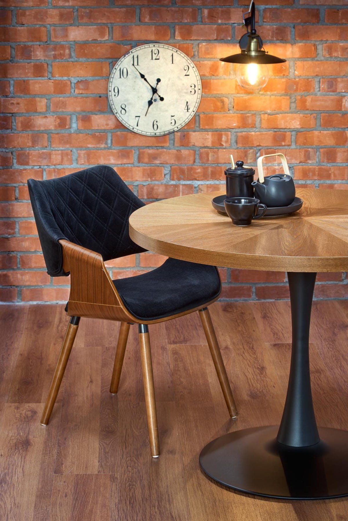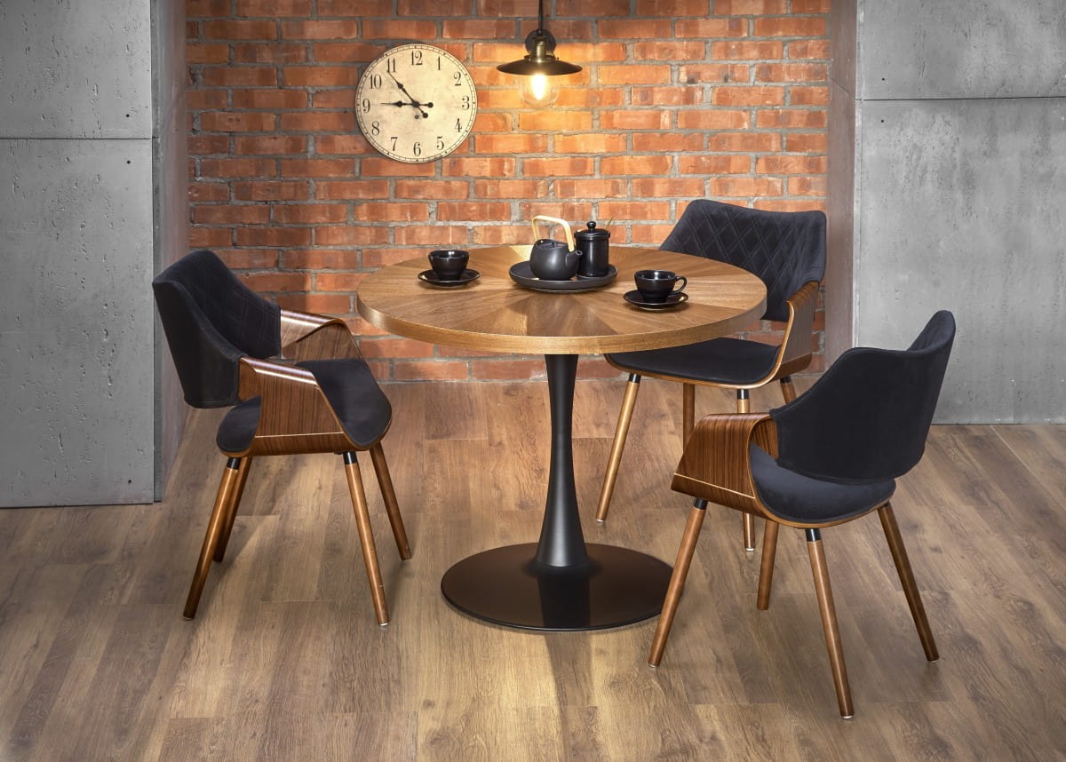 CARMELO stół okrągły, blat - orzech, noga - czarny