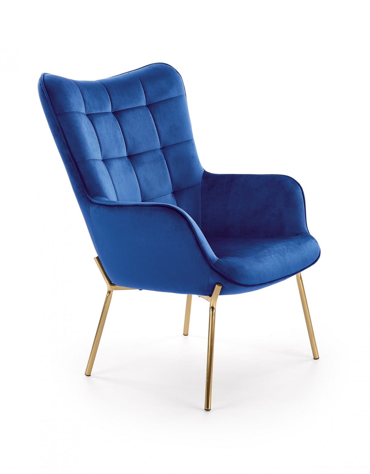 CASTEL 2 fotel uszak granatowy-złoty welur Velvet