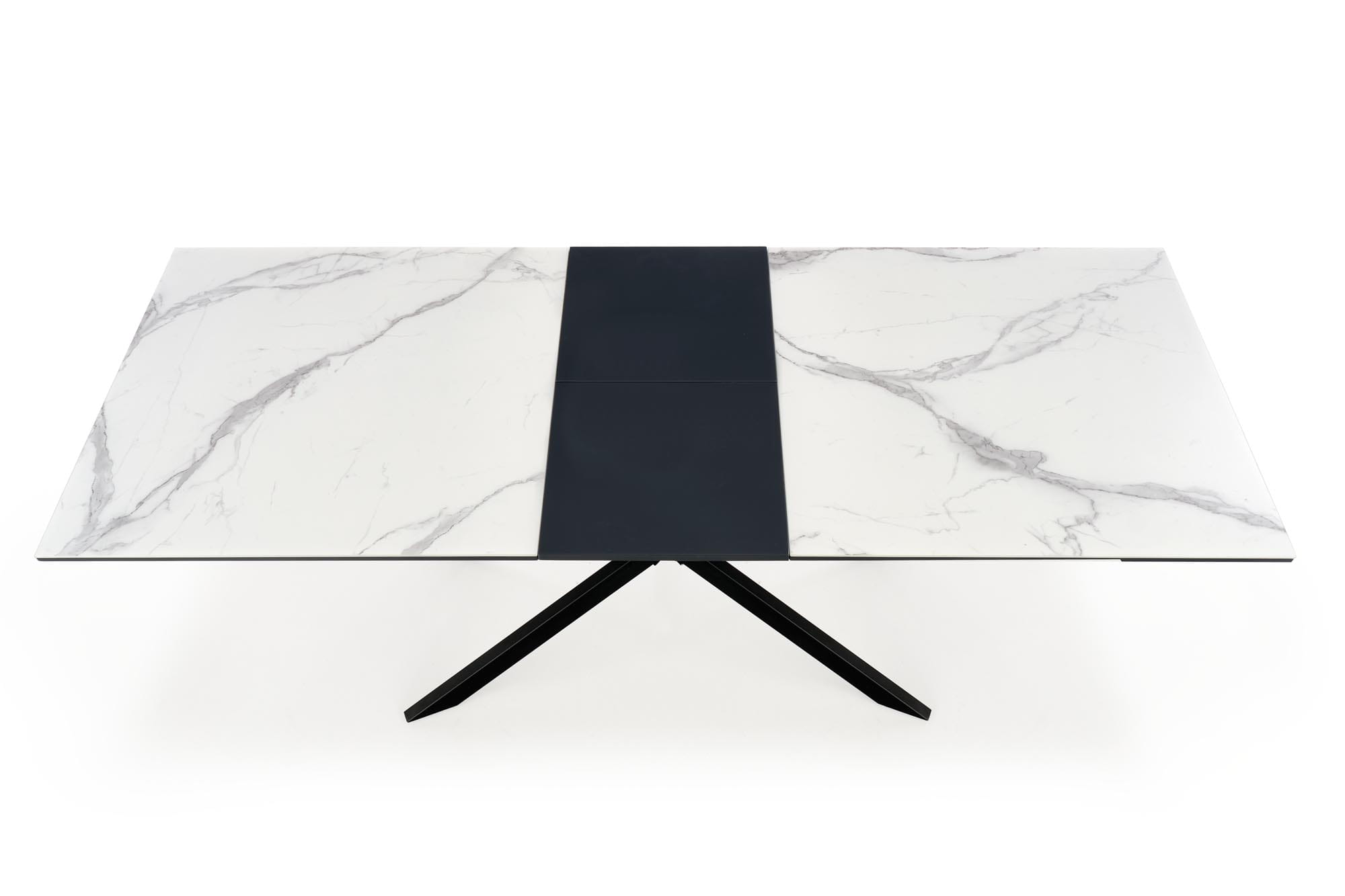 DIESEL stół rozkładany blat - biały marmur / c. popiel, nogi - czarny