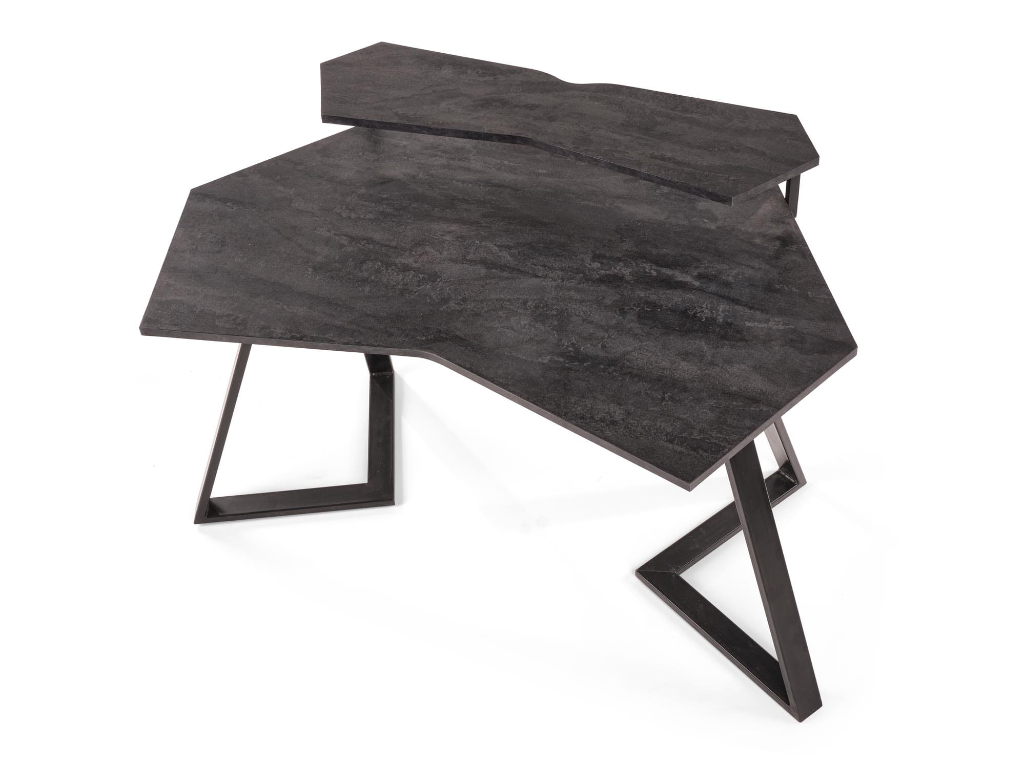 Biurko gamingowe FORKS Halmar to idealne rozwiązanie dla użytkowników spędzających sporo czasu przed monitorem. Designerska forma, nietypowy kształt blatu i nóg sprawiają, że biurko przyciąga spojrzenia wnosząc do pomieszczenia swoisty charakter. Przemyślane rozwiązanie stanowi drugi, wyższy blat, na którym świetnie prezentują się głośniki i inne gadżety, które po prostu najwygodniej trzymać pod ręką. Stalowe nogi sprawiają, że cała konstrukcja jest niezwykle wytrzymała i stabilna, a precyzja wykonania potęguje wrażenia wizualne. Dodatkowo, płyta meblowa okleinowana, z której wykonano blat odznacza się wysoką odpornością na zniszczenia, a praktyczny dekor ułatwia utrzymanie czystości.