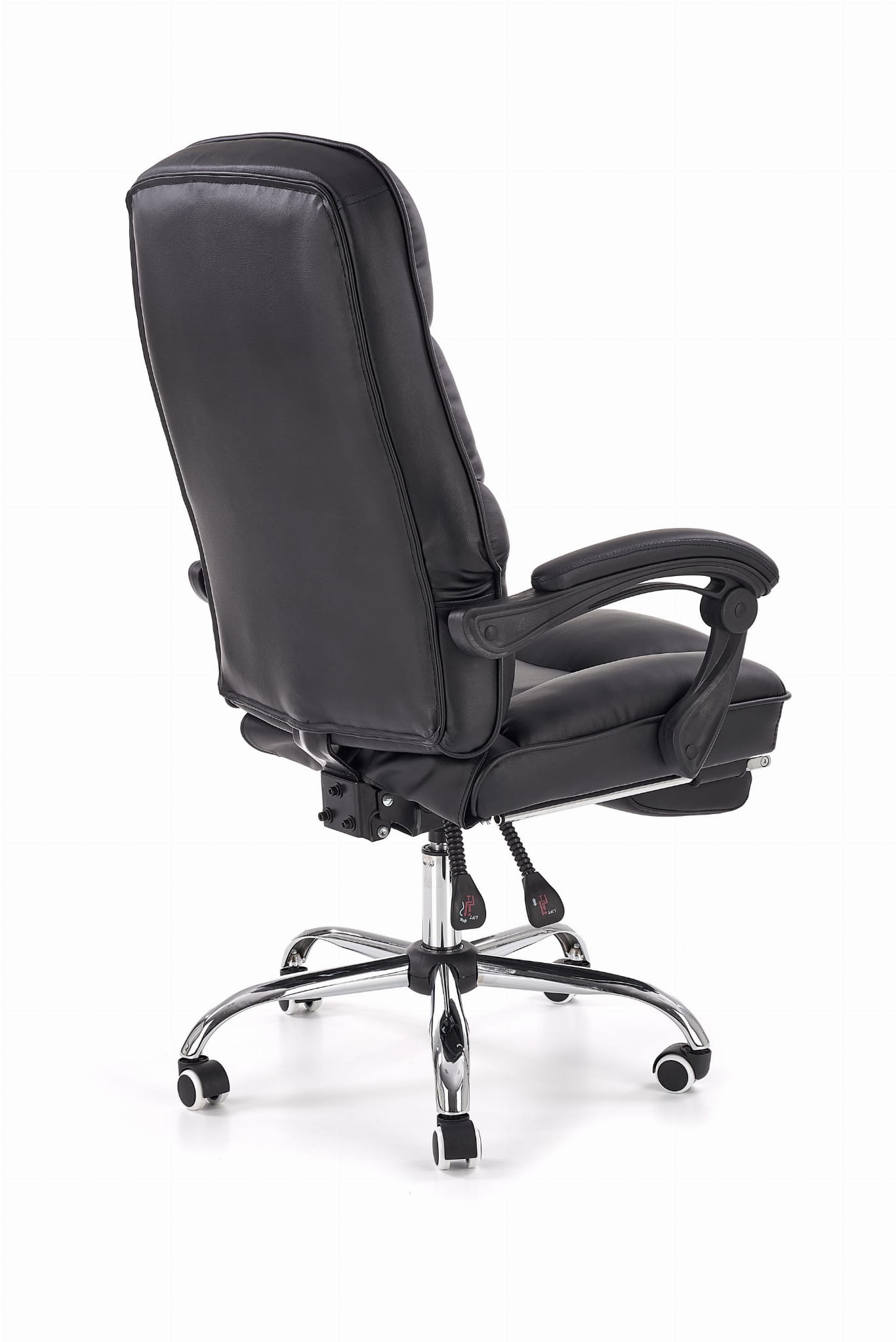 Fotel ALVIN to elegancki fotel biurowy, tapicerowany czarną eco-skórą, wyposażony jest on w tapicerowany podnóżek, który sprawi ulgę po ciężkim dniu pracy. Fotel ten również posiada miękkie podłokietniki, które odciążą pracę rąk podczas pracy. Fotel ten posiada mechanizm TILT, pozwalający na regulację oraz blokowanie pozycji co pozwala na przyjęcie wygodnej dla użytkownika pozycji oraz swobodne bujanie się.