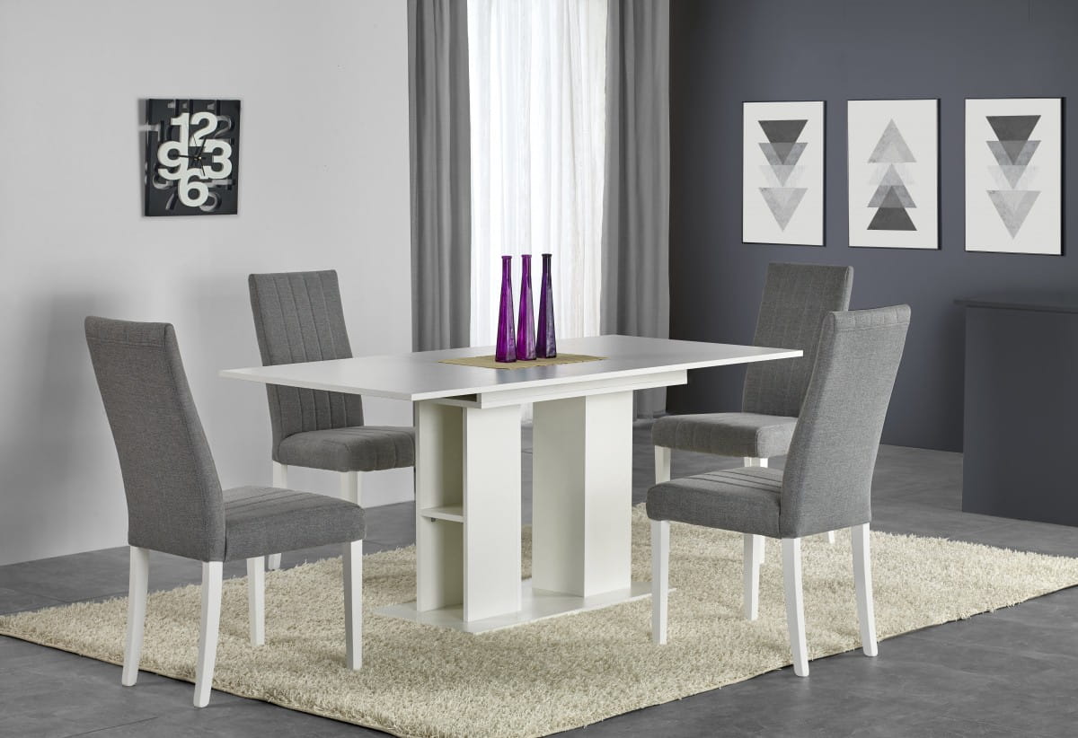 Produkt prezentowany w ofercie to elegancki stół rozkładany, którego blat wykonany został z płyty , a nogi stołu zrobiono MDF-u . Stół posiada system rozkładania który pozwala zwiększać powierzchnie blatu. Mebel posiada prostą formę, uniwersalny styl, oraz nogi z ciekawymi akcentami. Idealnie będzie się harmonizował się z pozostałymi meblami wnętrza pomieszczeń Państwa domów. Stół ten może mieć szerokie zastosowanie, doskonale nadaje się niemal do wszystkich pomieszczeń, idealnie pasuje m.in. salonu, a także jako stół kuchenny do nowoczesnej jadalni.