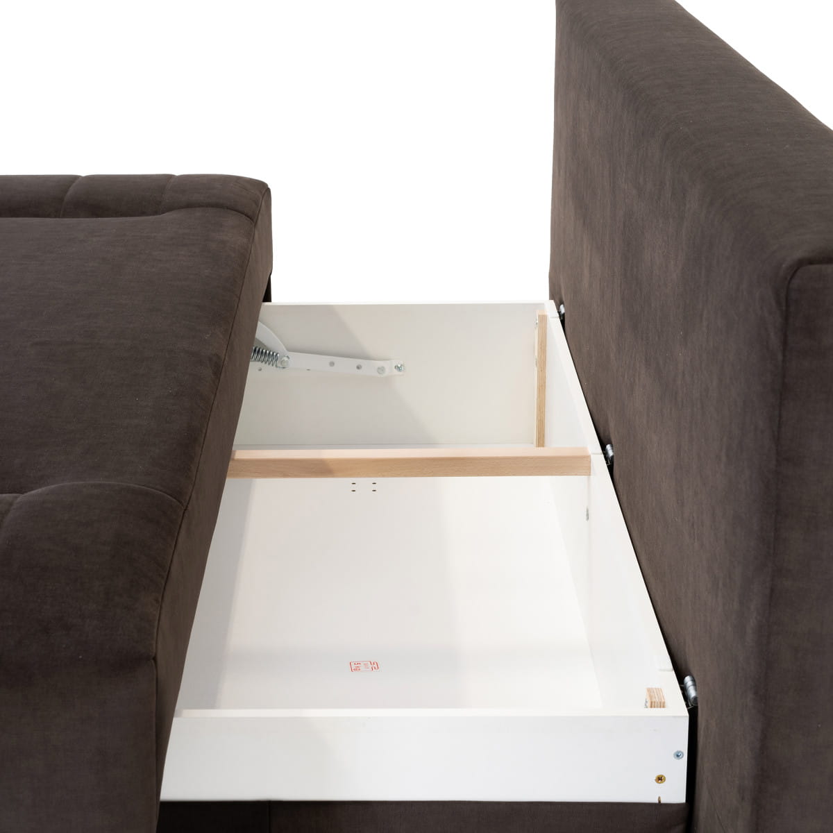 Utrzymaj porządek i zaoszczędź miejsce w szafie. Kanapa posiada praktyczny schowek wbudowany pod siedziskiem. Wykorzystasz go do przechowywania grubych koców lub innych tekstyliów, które możesz w każdej chwili prędko wyjąć.