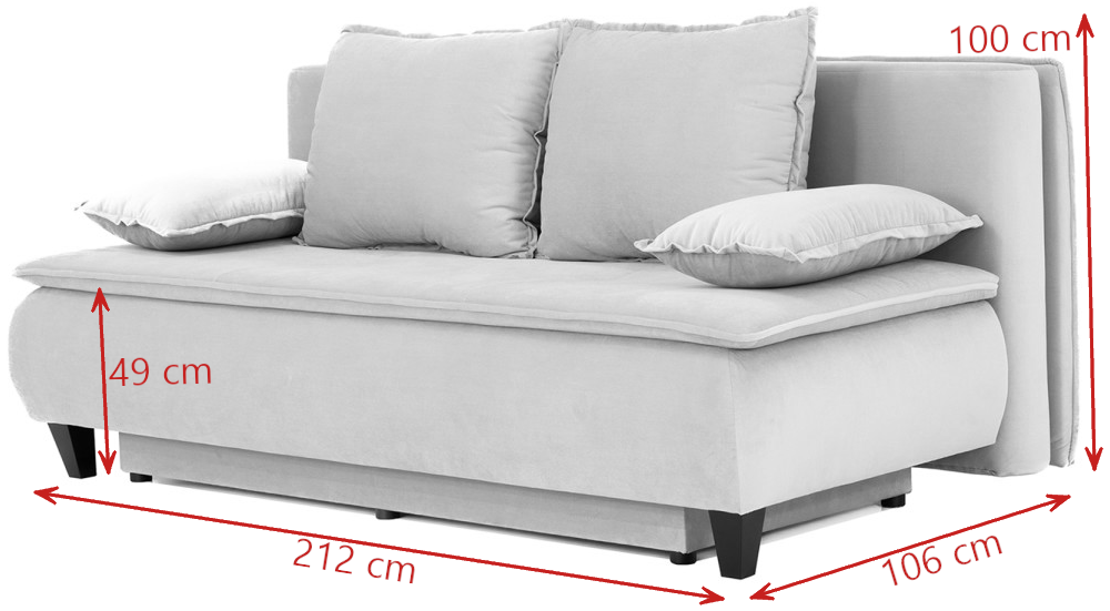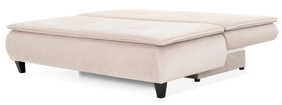Praktyczna konstrukcja oparta na sprężynach kieszeniowych (pocket) znajdujących się zarówno w siedzisku, jak i oparciu zwiększa komfort wypoczynku na rozłożonej kanapie. Dodatkowym atutem są wysokie stylowe nóżki.