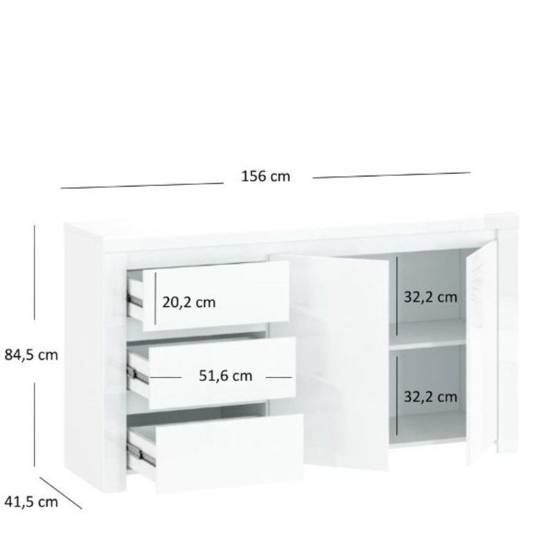Komoda 2d3s, biały połysk, kolekcja Lingo