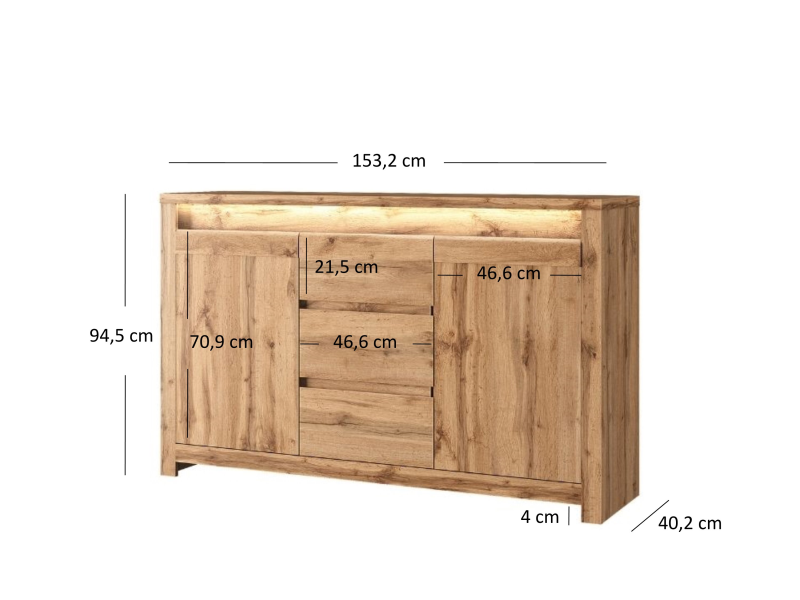Komoda 2d3s, dąb wotan, kolekcja Clover