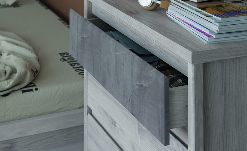 Prosta komoda 4s z szufladami z kolekcji Jazz idealnie sprawdzi się we wszystkich pomieszczeniach w domu. Komoda składa się z 4 szuflad, które są bez uchwytów. Uniwersalna, delikatna kolorystyka mebla idealnie dopasuje się do każdego koloru ściany.