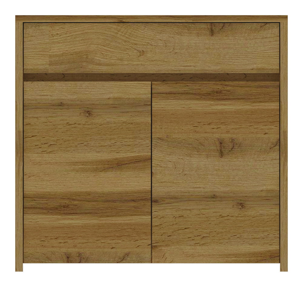 Komoda Tahoe TA5 wykonana została w naturalnej kolorystyce, co powoduje, że pomieszczenia dzięki niej stają się ciepłe i przytulne. Korpusy są zrobione z wysokiej jakości płyty wiórowej laminowanej, natomiast fronty z płyty MDF oklejonej folią PCV. Wszystko to jest w pięknym kolorze dąb wotan. Kupując meble z kolekcji Tahoe mamy możliwość dokupienia oświetlenia LED półek witryn oraz dodatkowych listew z oświetleniem do szafy, co nada jeszcze większego uroku meblom. Znajdziemy tu wysokiej jakości system bezdotykowego otwierania frontów oraz szuflad.