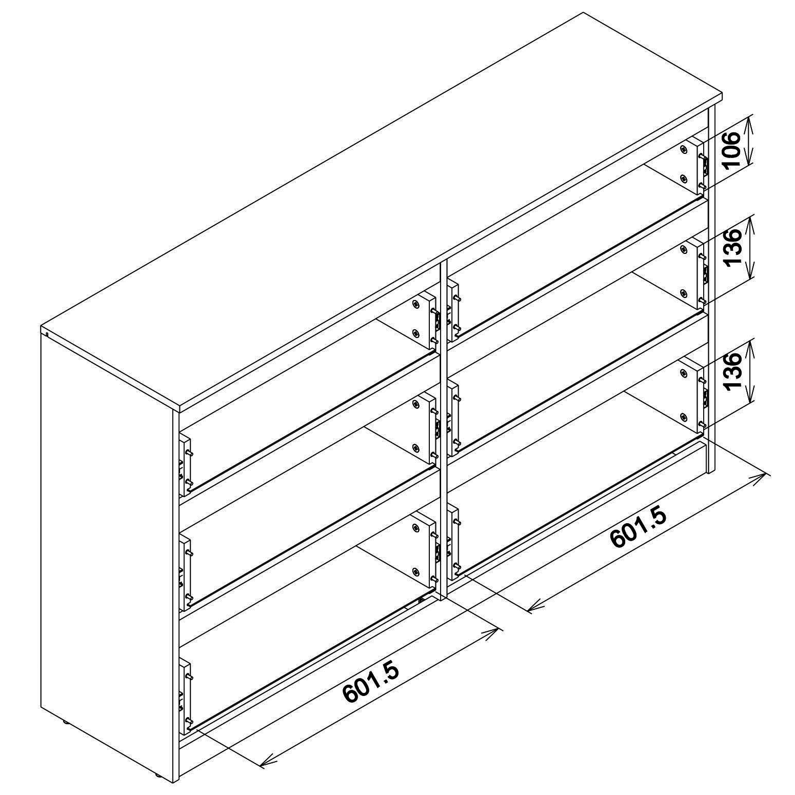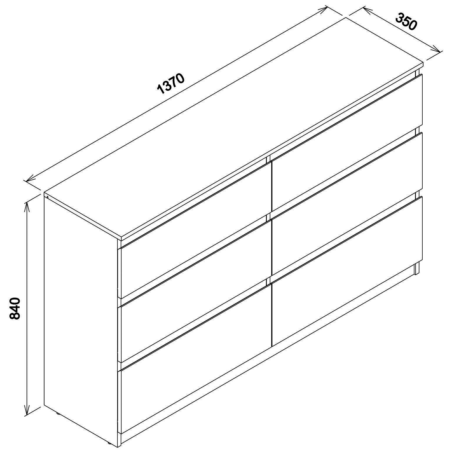 Mebel wyposażono w sześć szuflad wysuwanych na solidnych prowadnicach kulkowych gwarantujących długotrwałą i bezawaryjną pracę.