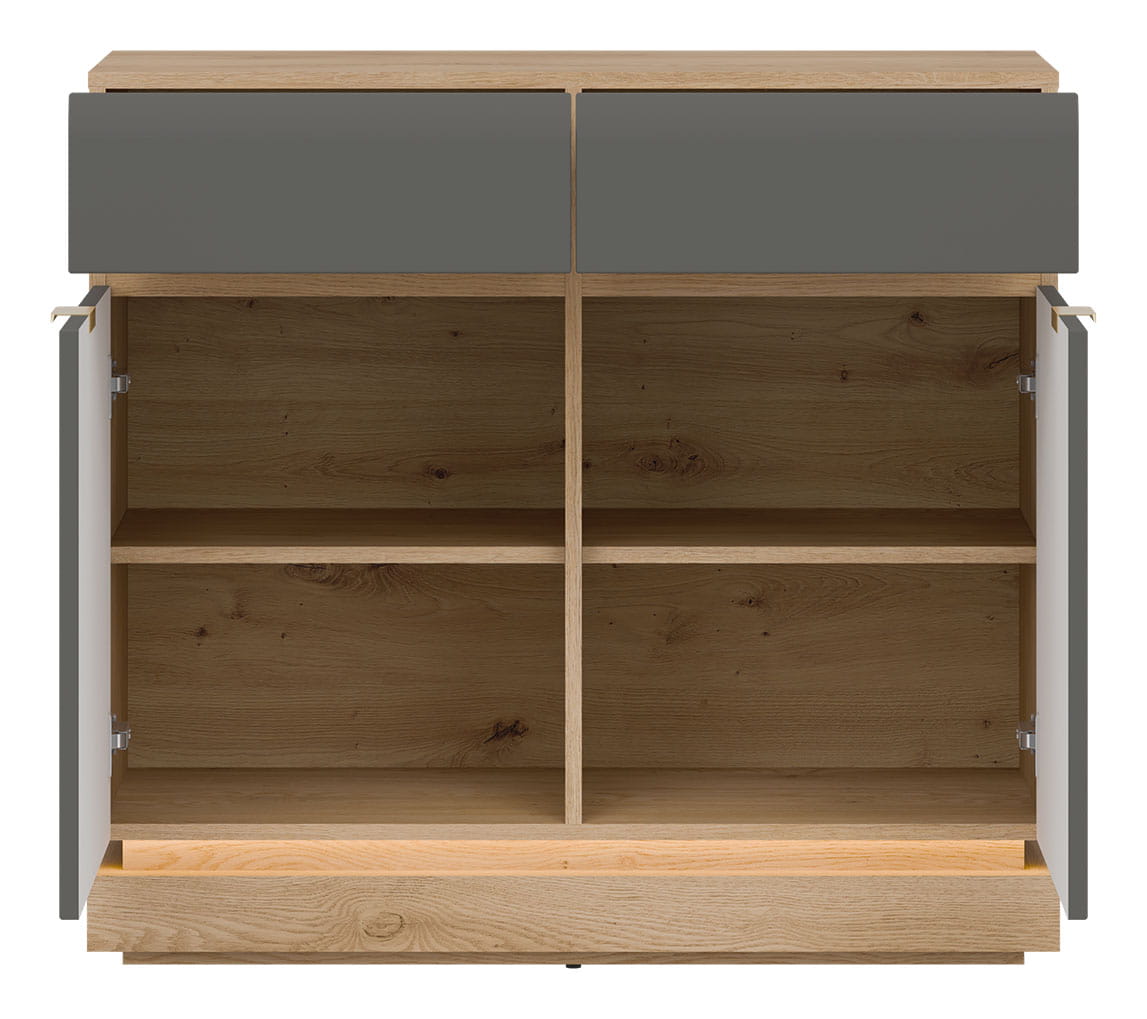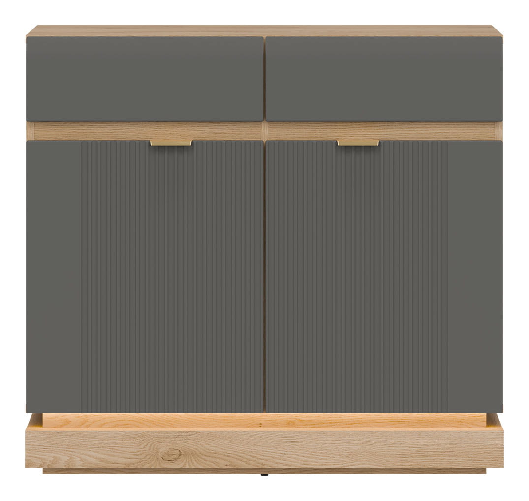 Komoda dwudrzwiowa z szufladami do pokoju Dąb Cremona Szary MILTON ML02