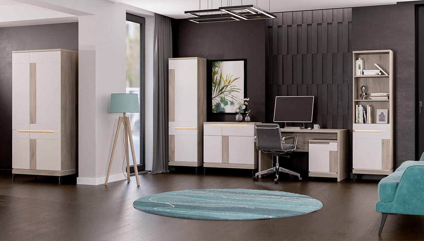 Aston AN02 to doskonały wybór dla osób poszukujących praktycznych i stylowych rozwiązań do biura, salonu i sypialni. Kompozycja kolorystyczna – kaszmir w zestawieniu z dębem cremona pozwala na stworzenie harmonijnej aranżacji, która równoważy nowoczesność z elementami tradycyjnego designu. Dzięki temu Twoje wnętrze nabierze indywidualnego charakteru i będzie zachwycać swoim wyglądem.