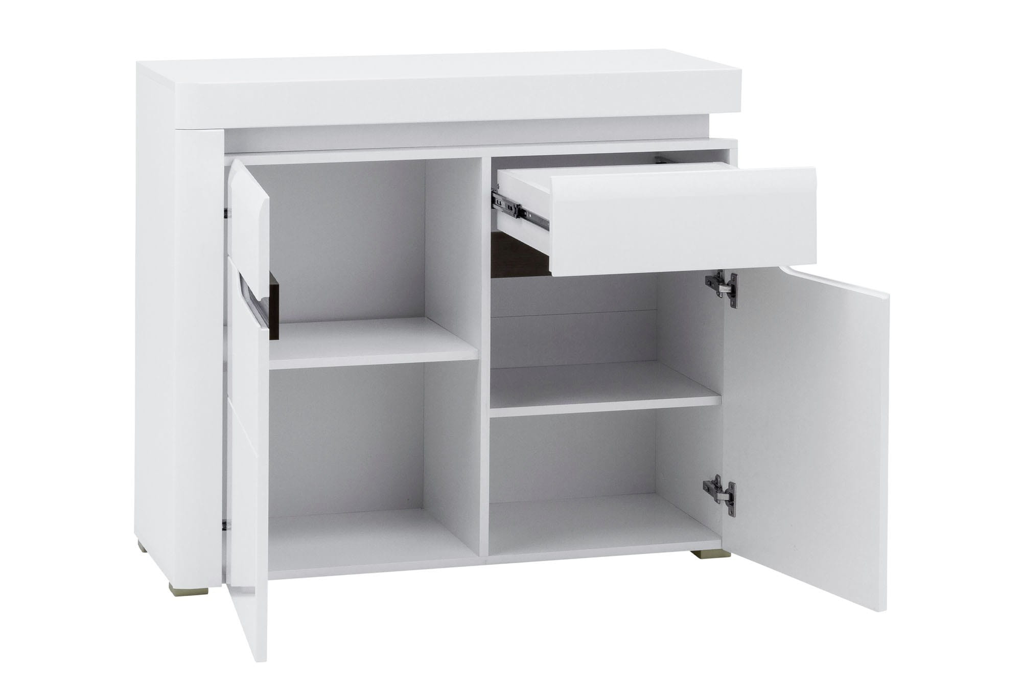 Mebel składa się dwóch otwieranych frontów, za którymi znajdują się cztery wnęki.