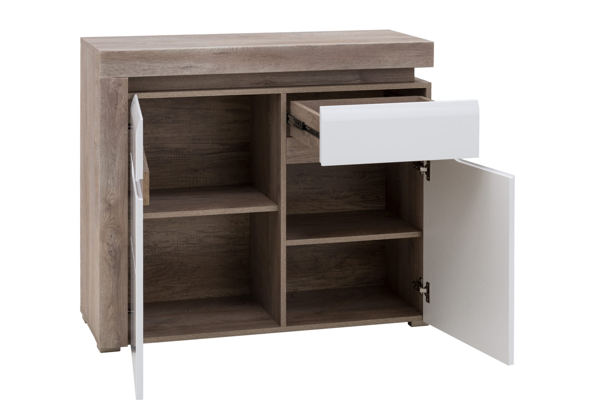 Komoda mała z szufladą dąb biała połysk IRMA IM3
