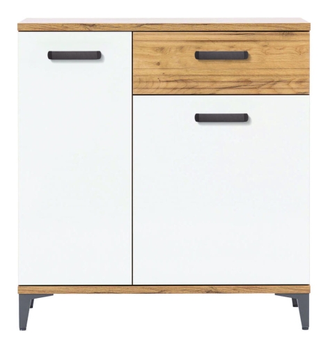 Komoda mała z szufladą dąb biała połysk SNOBI SB2
