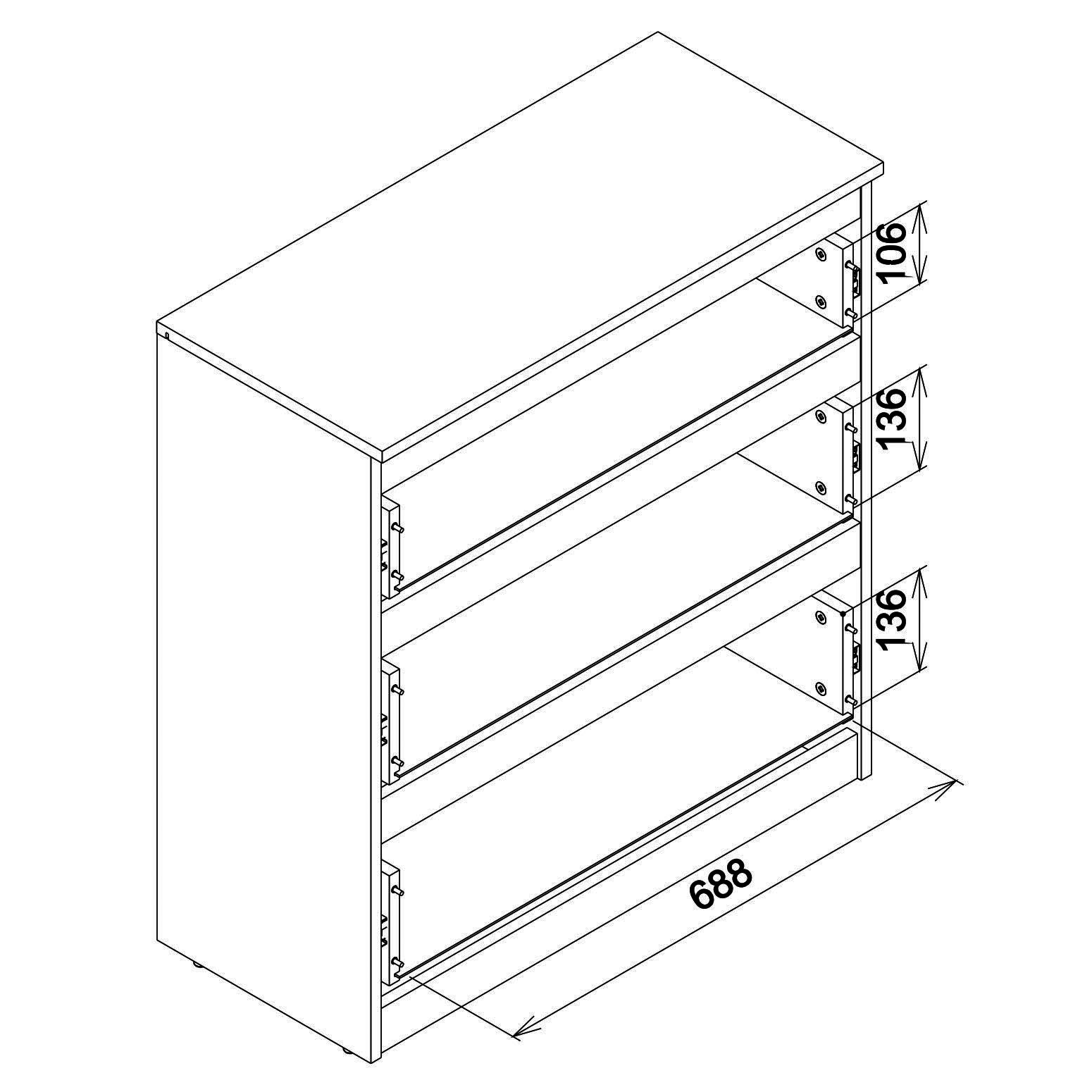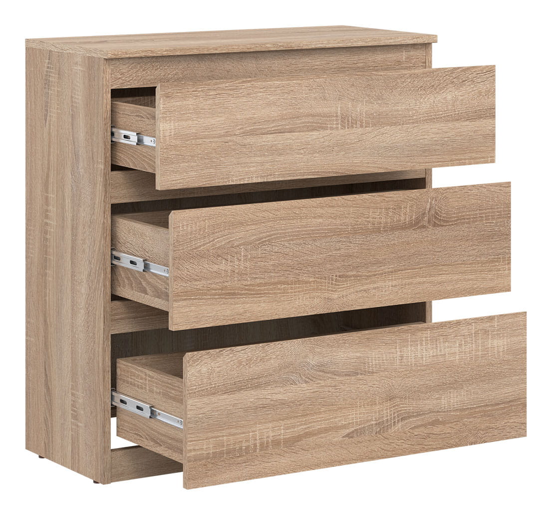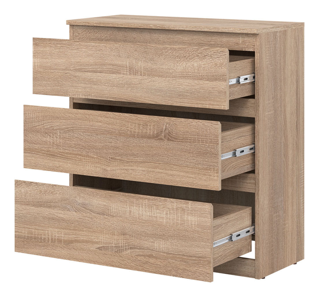 Mebel wyposażono w trzy szuflady wysuwane na solidnych prowadnicach kulkowych gwarantujących długotrwałą i bezawaryjną pracę.