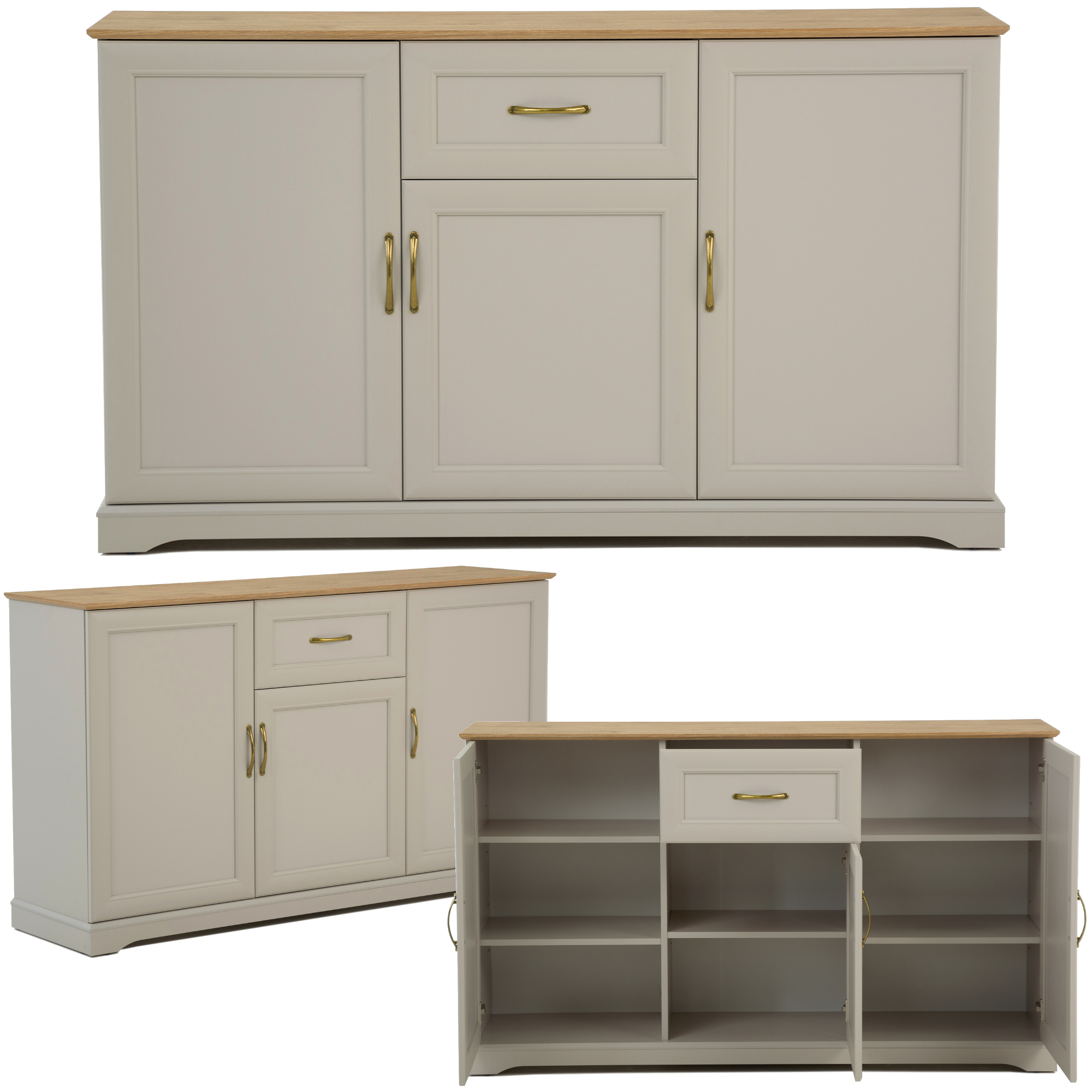 Komoda trzydrzwiowa z szufladą Duża szafka Rama Dąb harbor Kaszmir SORETTO