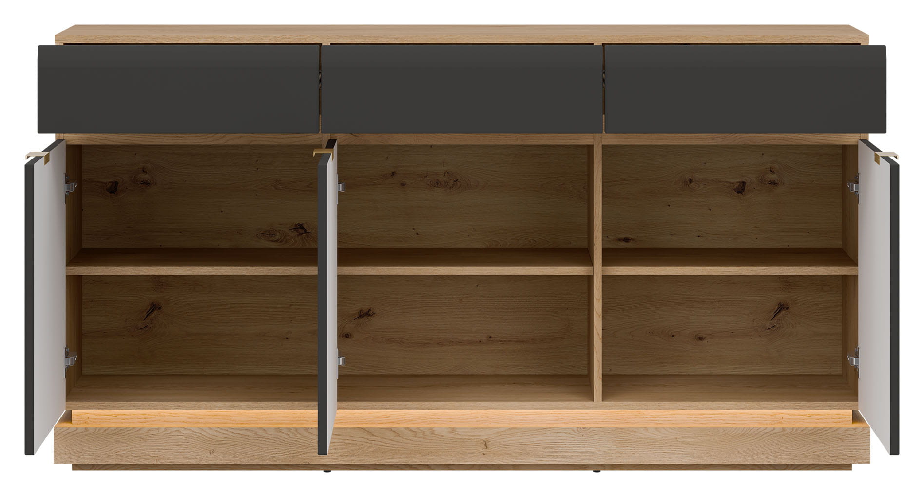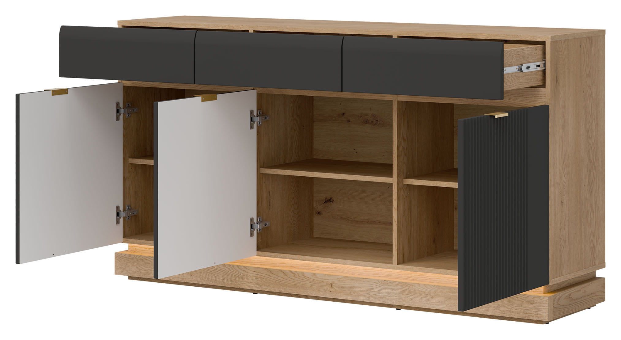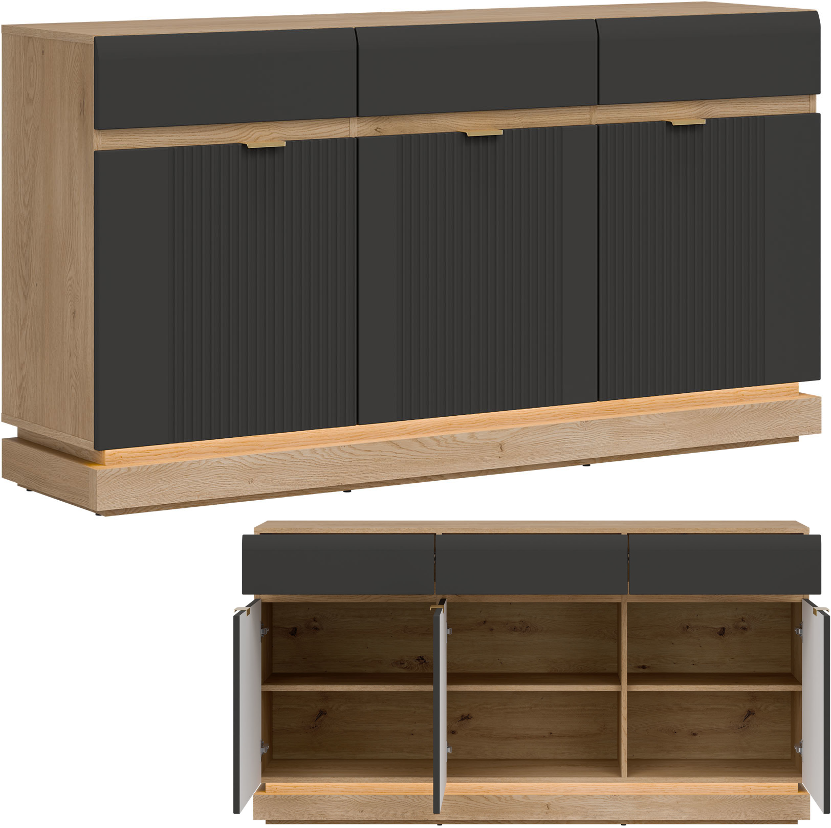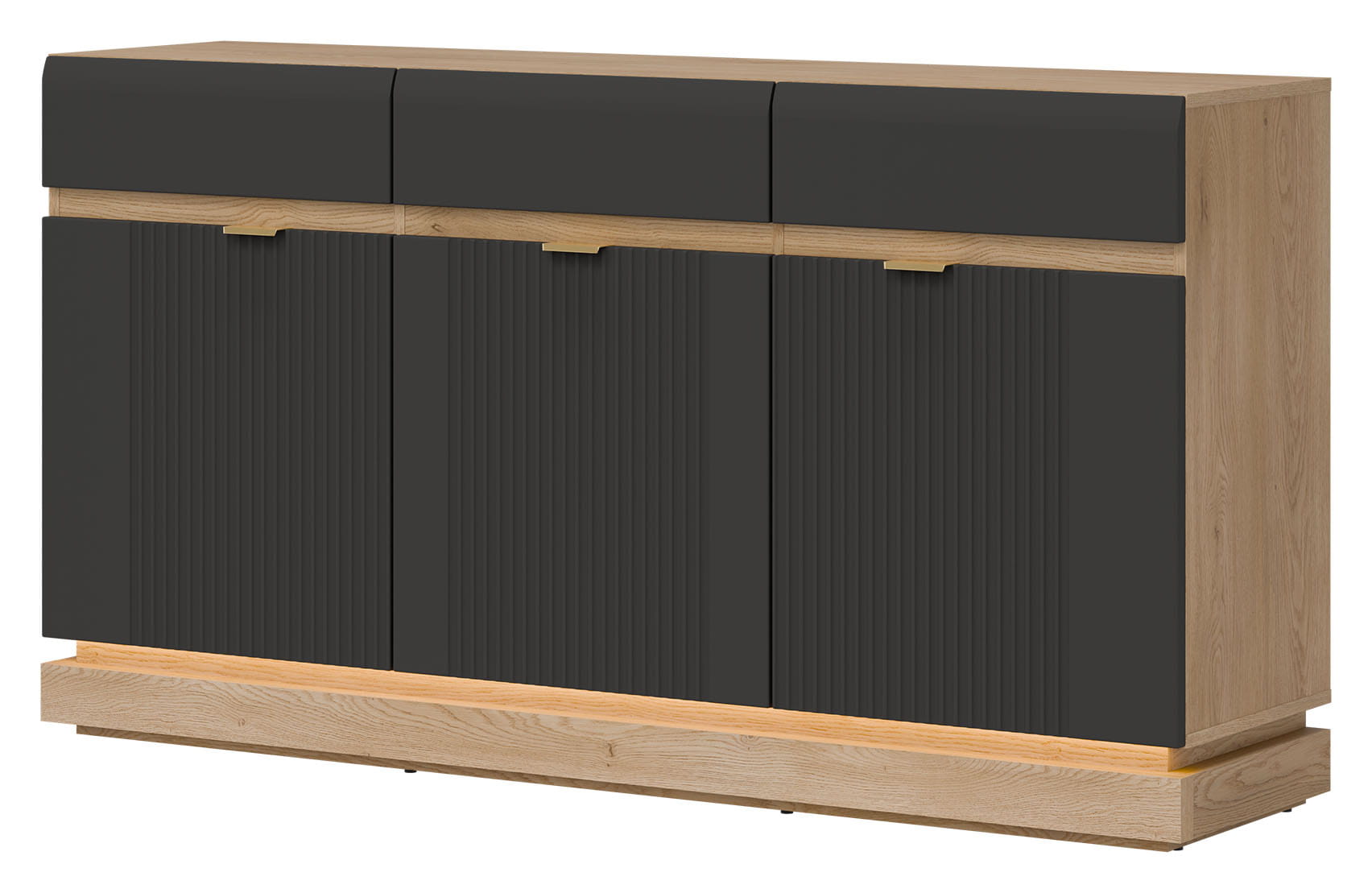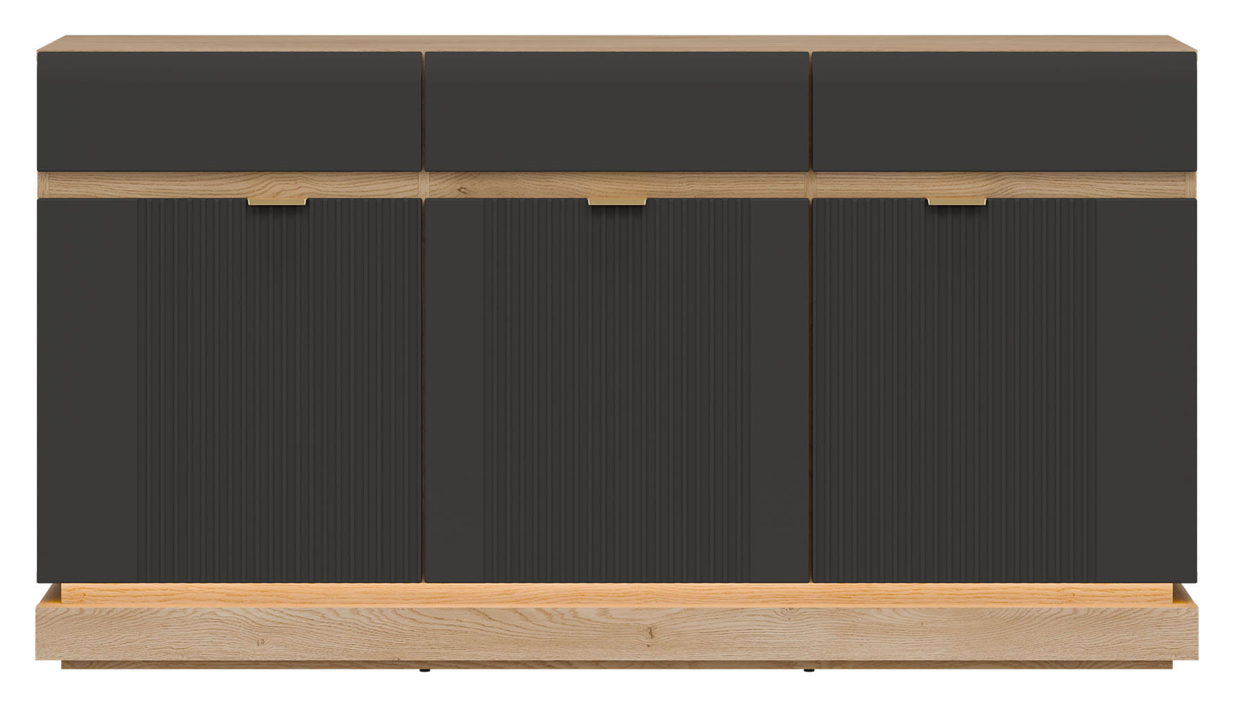 Komoda trzydrzwiowa z szufladami do salonu Dąb Cremona Antracyt MILTON ML03