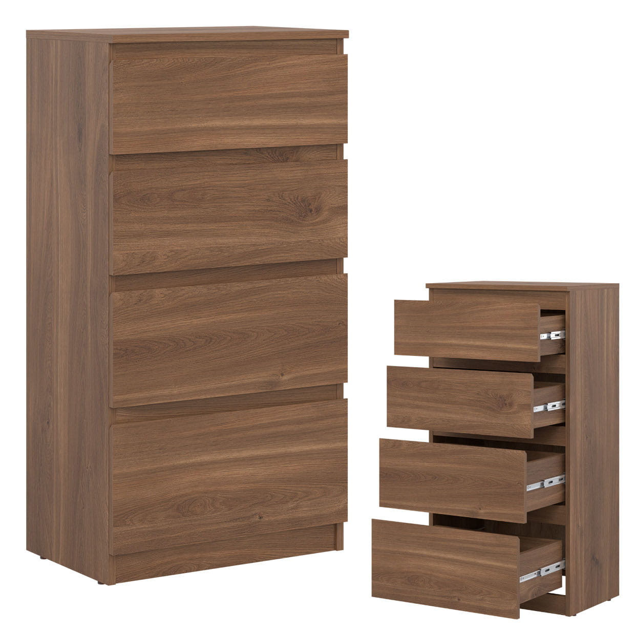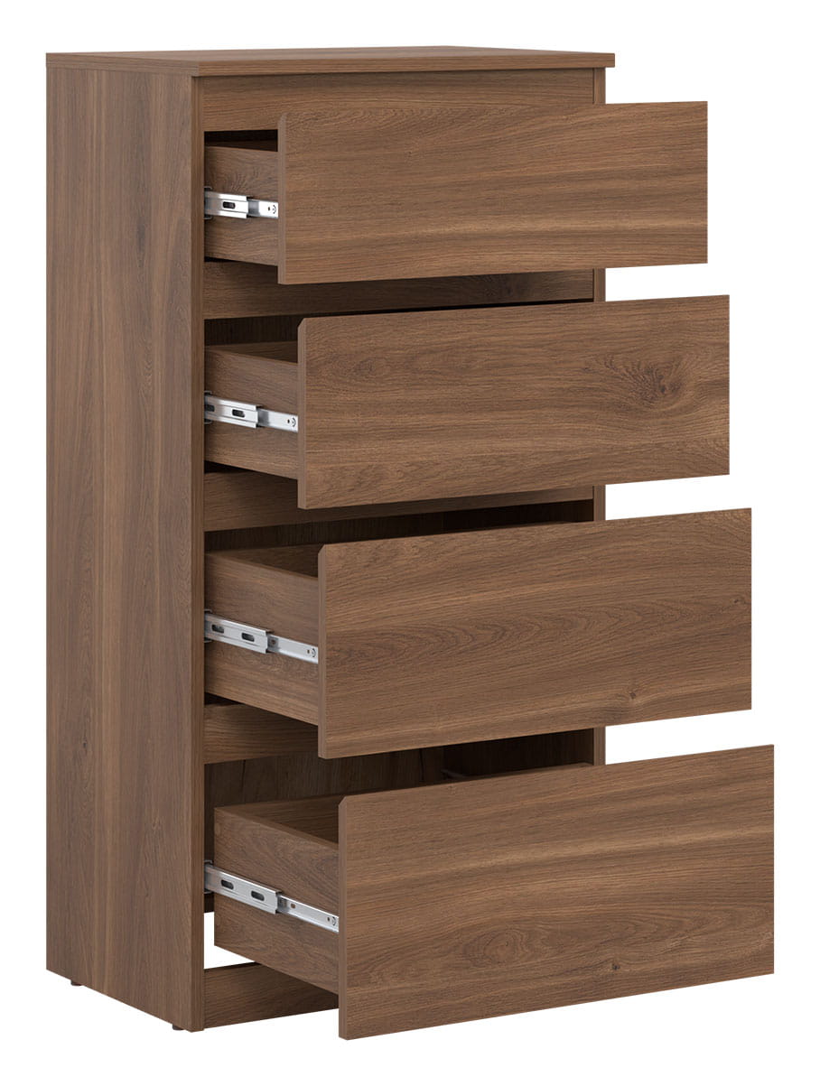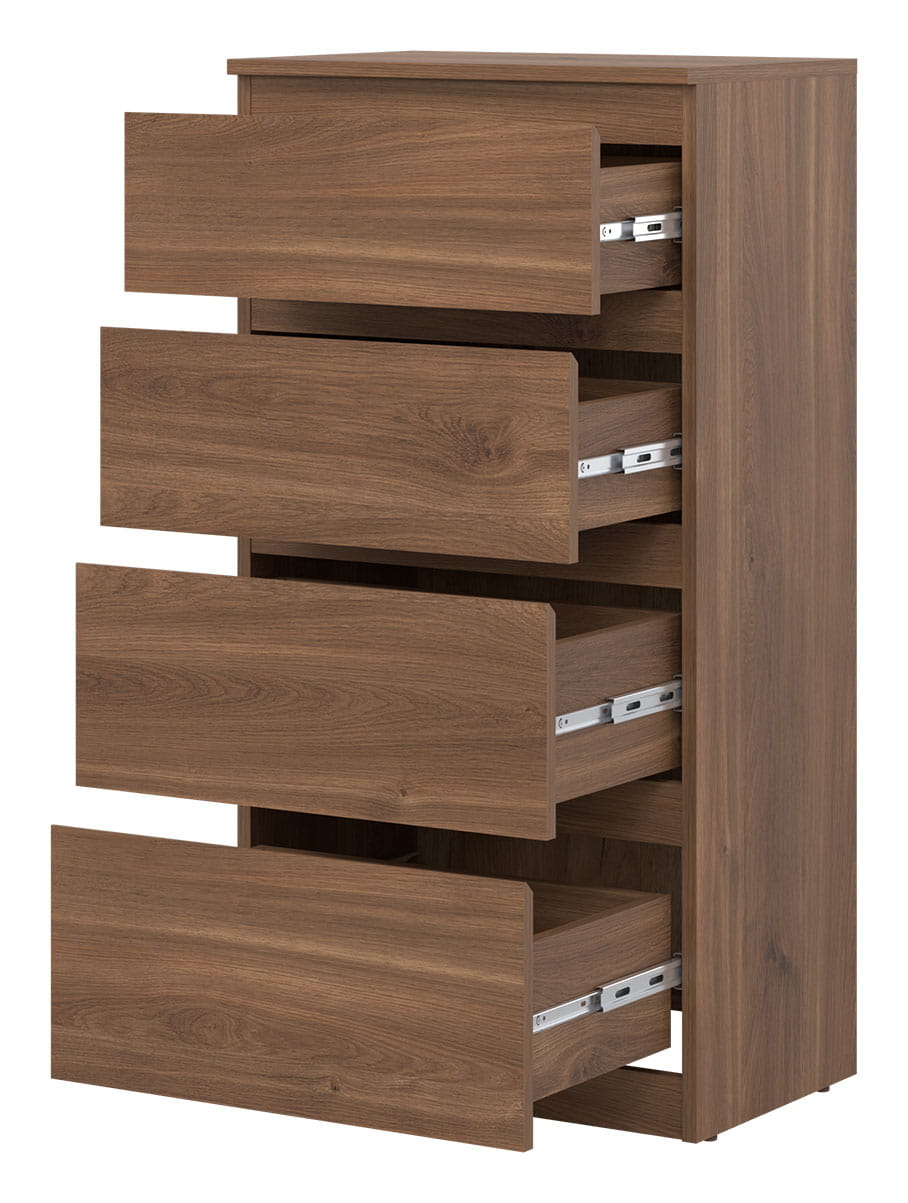 Mebel wyposażono w cztery szuflady wysuwane na solidnych prowadnicach kulkowych gwarantujących długotrwałą i bezawaryjną pracę.