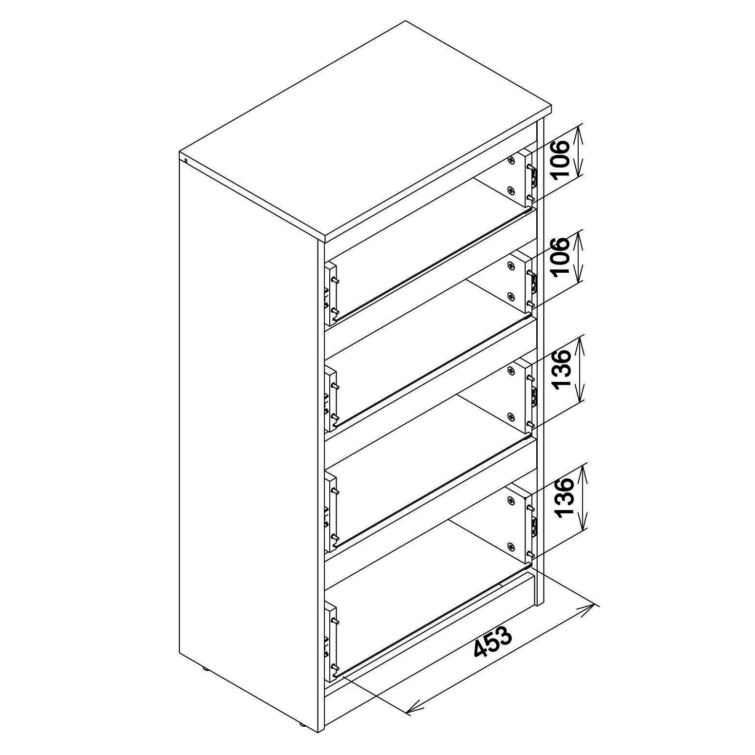 Mebel wyposażono w cztery szuflady wysuwane na solidnych prowadnicach kulkowych gwarantujących długotrwałą i bezawaryjną pracę.
