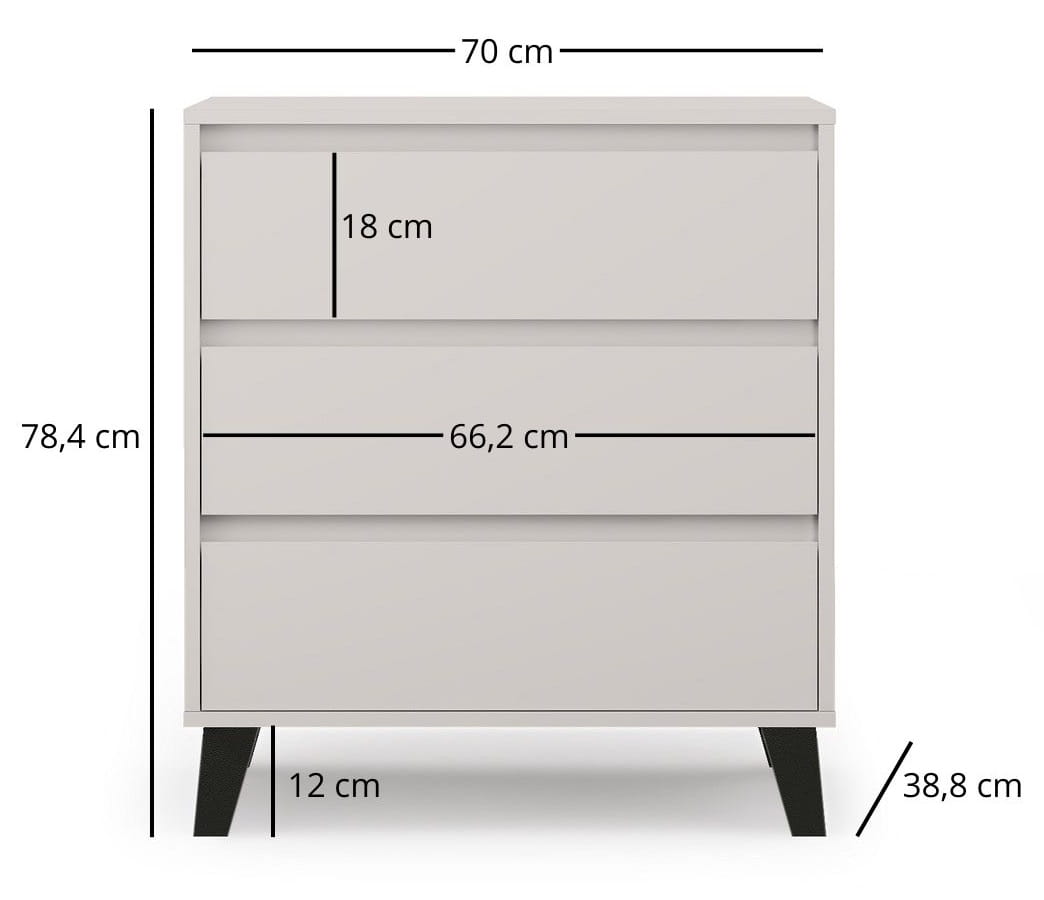 stanowi funkcjonalny i atrakcyjny element wyposażenia wnętrza. Model znakomicie sprawdzi się w nowoczesnych aranżacjach. Powierzchnia blatu może posłużyć do wyeksponowania domowej galerii zdjęć i elementów dekoracyjnych a wnętrze do uporządkowania drobnej garderoby i przydatnych drobiazgów. Mebel wykonany został z płyty meblowej laminowanej w kolorze kaszmirowym.