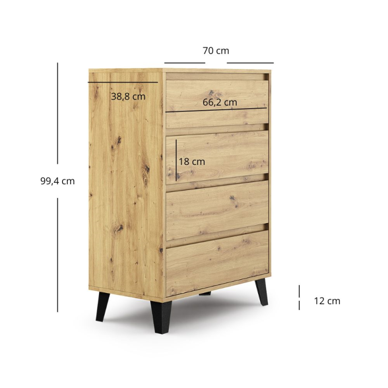 Komoda z Szufladami Minimalistyczna Dąb Artisan Borg 4S/70