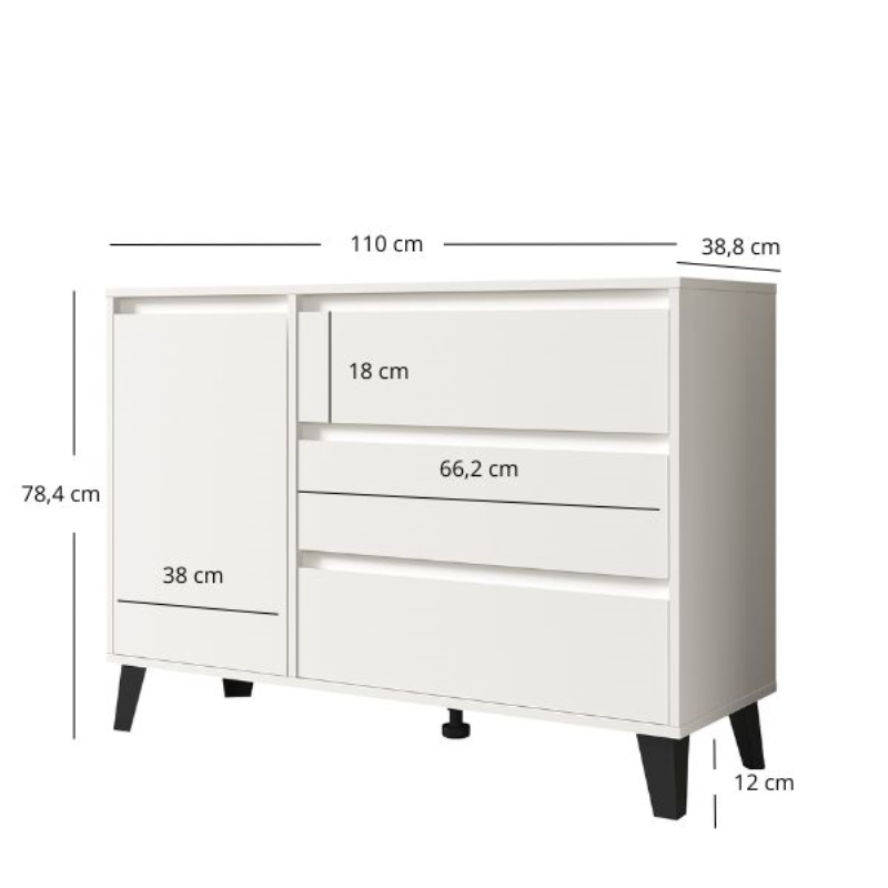 to znakomite rozwiązanie do mieszkania urządzonego w modnym, nowoczesnym stylu. Zamykana szafka oraz trzy szuflady zapewniają jej ogromną pojemność, dzięki czemu może przechować wiele przedmiotów takich jak ubrania, książki lub pościele. Obszerny blat może posłużyć z kolei do wyeksponowania domowej galerii zdjęć i elementów dekoracyjnych.