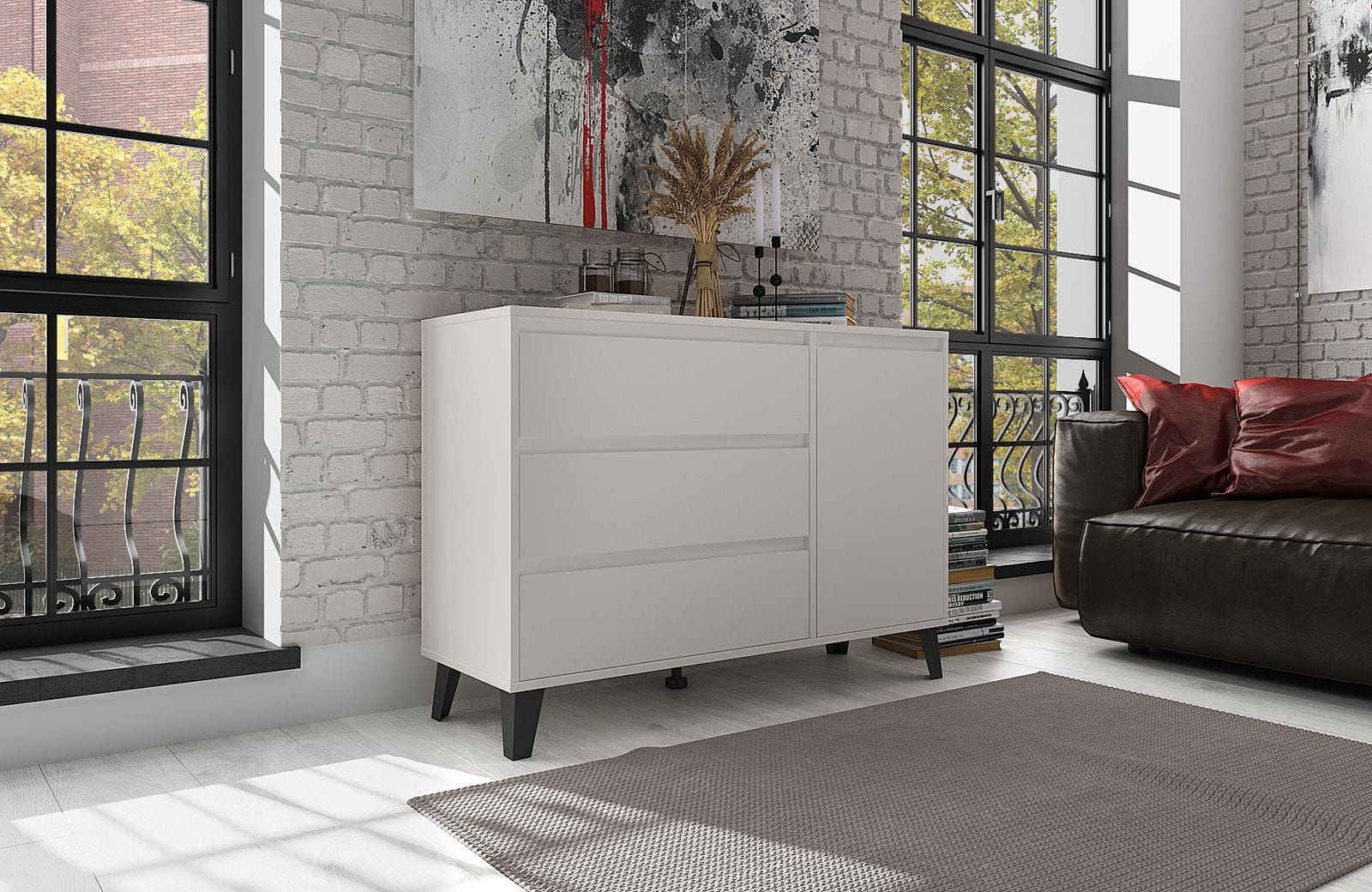 Komoda z Szufladami Minimalistyczna Szafka do Salonu Biała Borg 1D3S