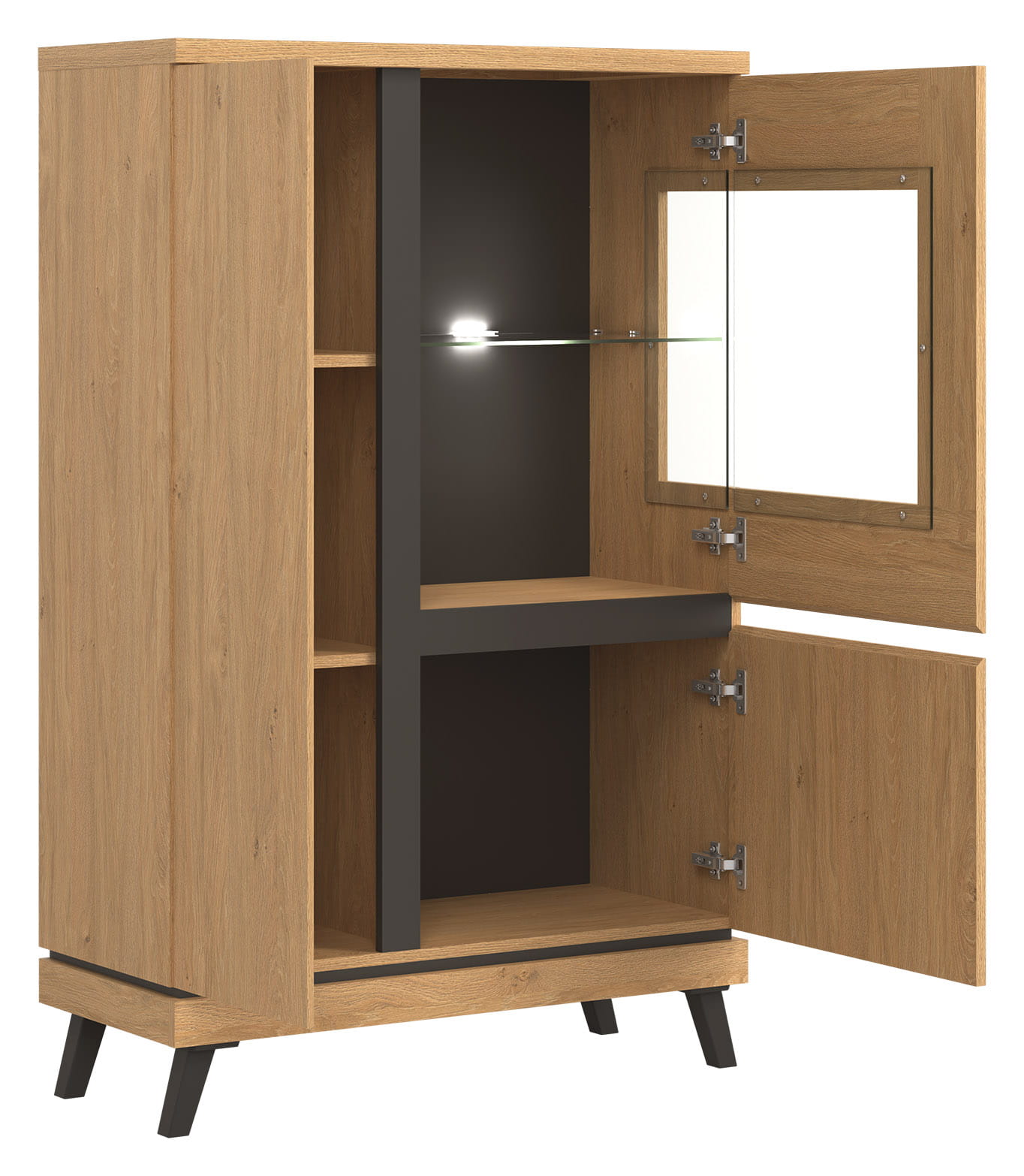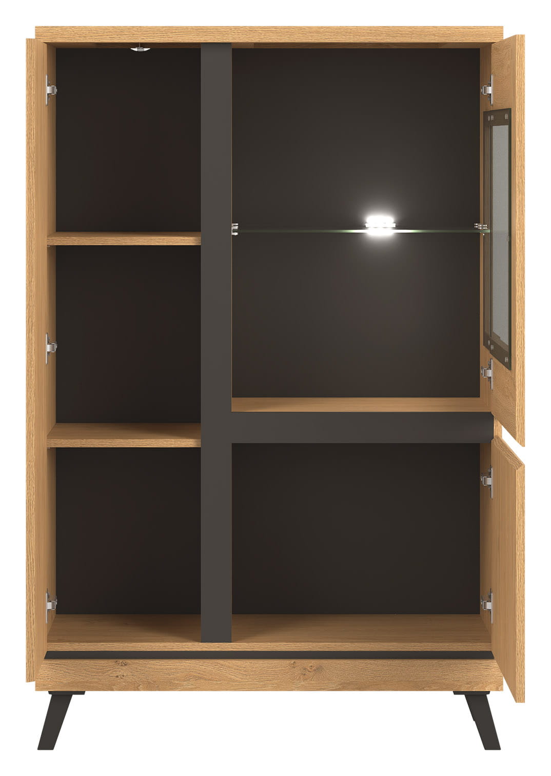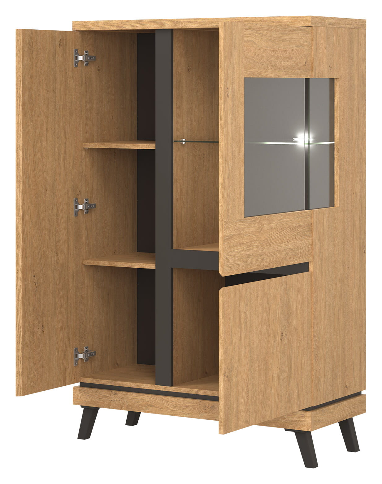 Kredens Komoda Witryna szklana do salonu dąb kamienny czarny ATE AT04