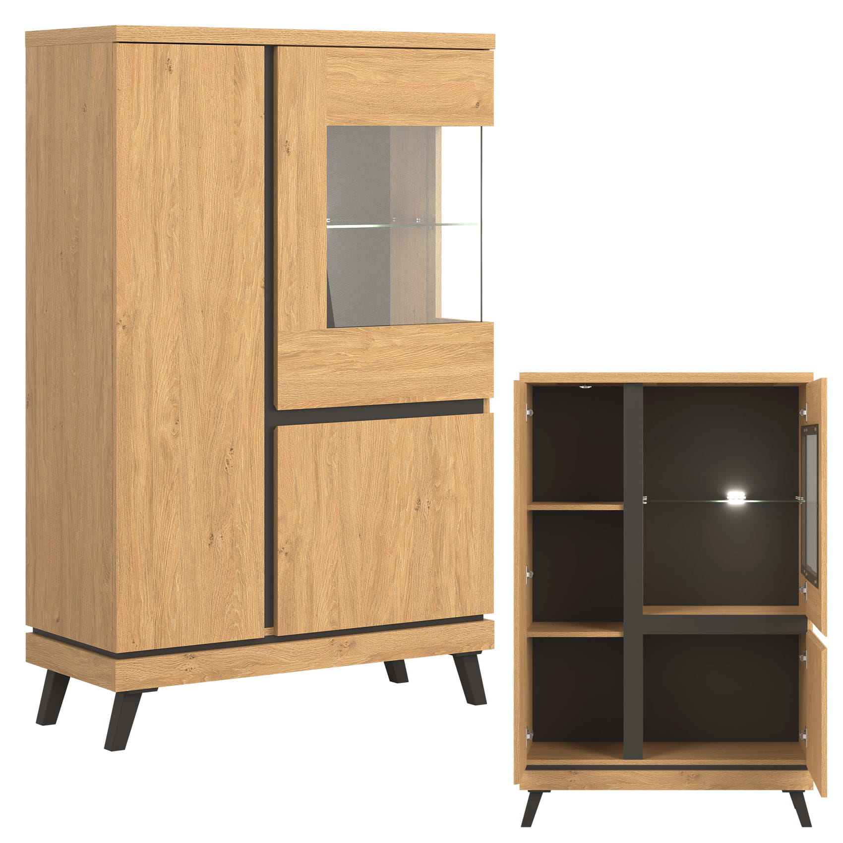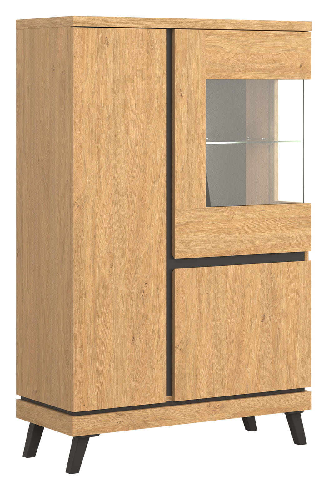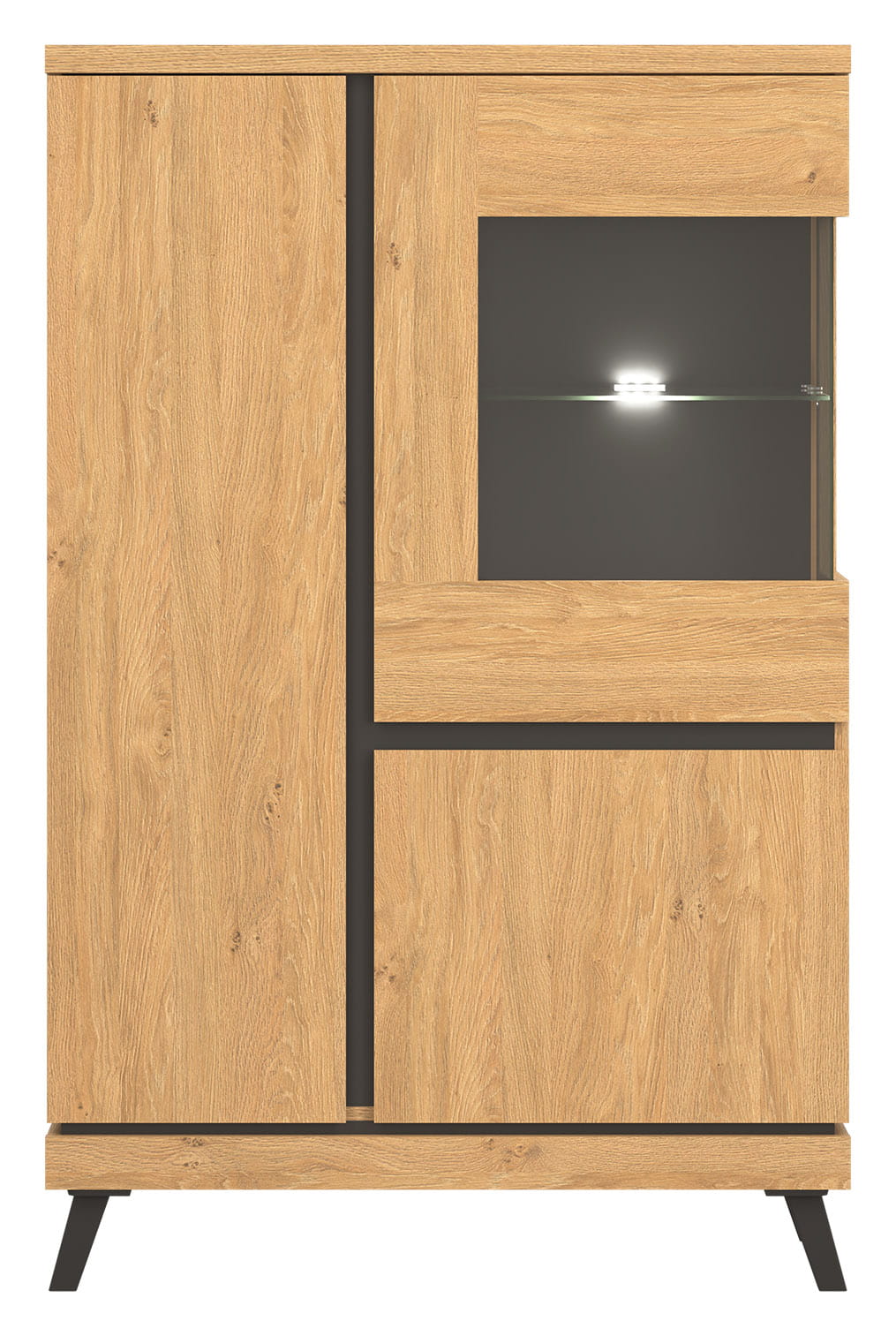 Kredens Komoda Witryna szklana do salonu dąb kamienny czarny ATE AT04