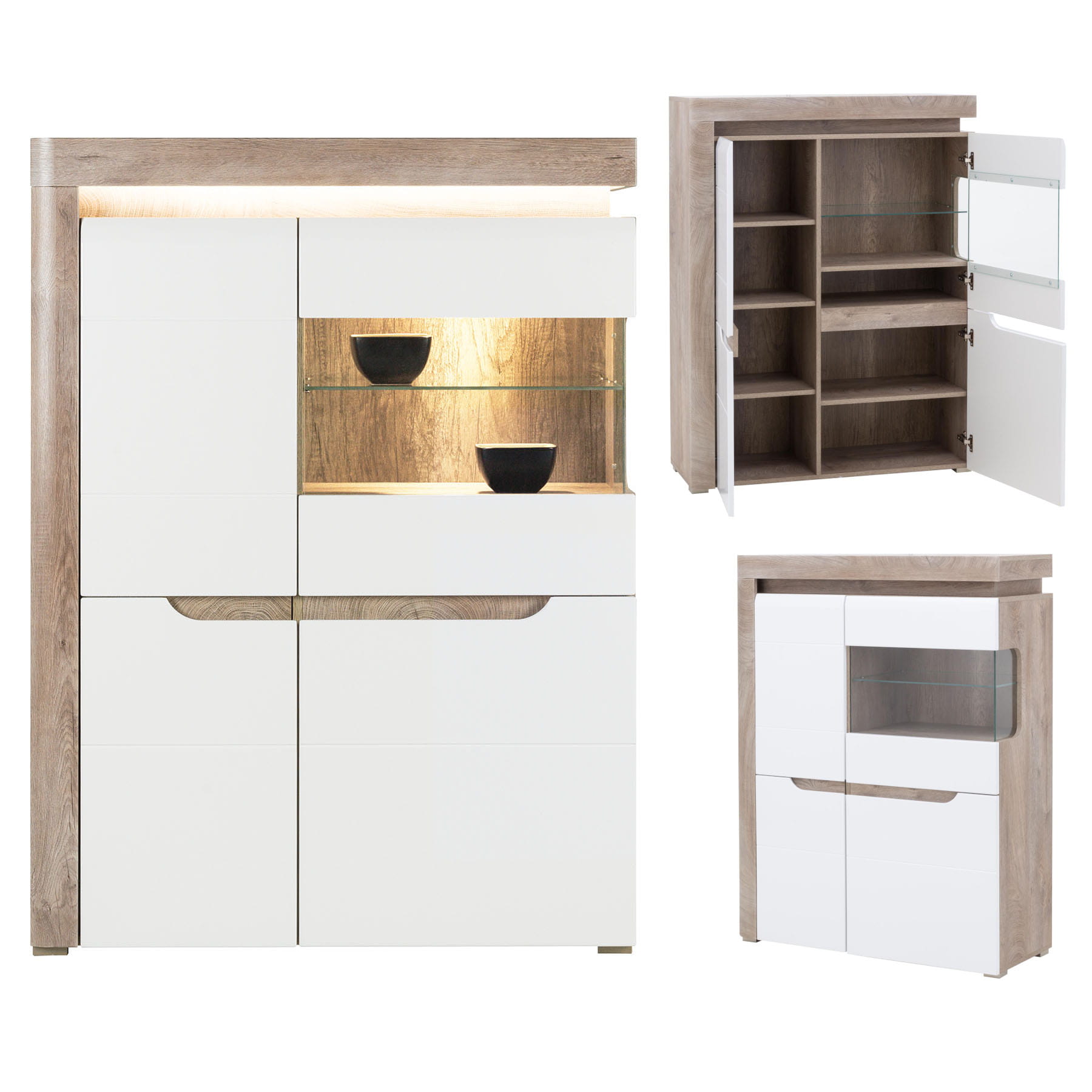IRMA IM5 wyróżnia się nowoczesnym designem oraz modną kolorystyką efektownie łączącą wybarwienie dębu z wykończonym na biały połysk frontem. Uwagę skupia na sobie wyrazista wstawka podkreślająca elegancki styl i masywność formy. Bezpośrednio nad drzwiami umieszczona jest ledowa listwa oświetleniowa, która nie tylko nada wnętrzu luksusowego charakteru, ale również wprowadzi niepowtarzalny klimat.