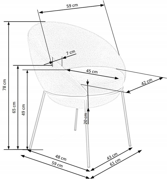 - Głębokość krzesła: 59 cm