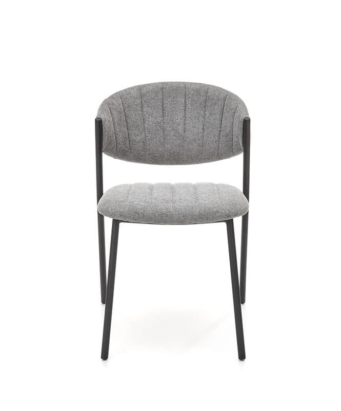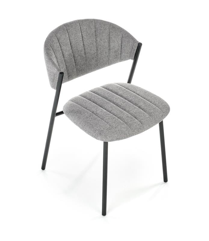 Krzesło K469 posiada komfortowe siedzisko i oparcie z dekoracyjnymi przeszyciami, które nadają meblowi wyjątkowego designu. Powierzchnia krzesła tapicerowana jest przyjemną w dotyku tkaniną odporną na zarysowania i otarcia. Prezentowany model posiada nóżki wykonane ze stali malowanej proszkowo w kolorze czarnym, dzięki którym mebel znakomicie sprawdzi się we wnętrzach urządzonych w stylu loft. Metalowy stelaż to gwarancja dużej wytrzymałości krzesła oraz jego stabilności podczas użytkowania. Tak skonstruowany mebel z pewnością przypadnie do gustu osobom, które szukają eleganckich a zarazem nowoczesnych rozwiązań.