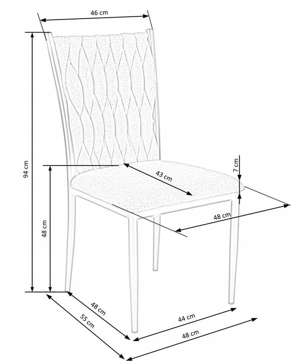 Krzesło K436 posiada komfortowe siedzisko oraz oparcie ozdobione dekoracyjnymi przeszyciami, które nadają meblowi wyjątkowego designu. Model tapicerowany jest miękką i przyjemną w dotyku - tkaniną VELVET. Tego typu materiał, a także stelaż w kolorze złotym sprawią, że krzesło pięknie prezentować się będzie we wnętrzach urządzonych na szykowny styl glamour. Metalowe nogi zagwarantują dużą wytrzymałość mebla oraz jego stabilność podczas użytkowania, dzięki czemu będziesz mógł cieszyć się eleganckim krzesłem przez wiele lat.